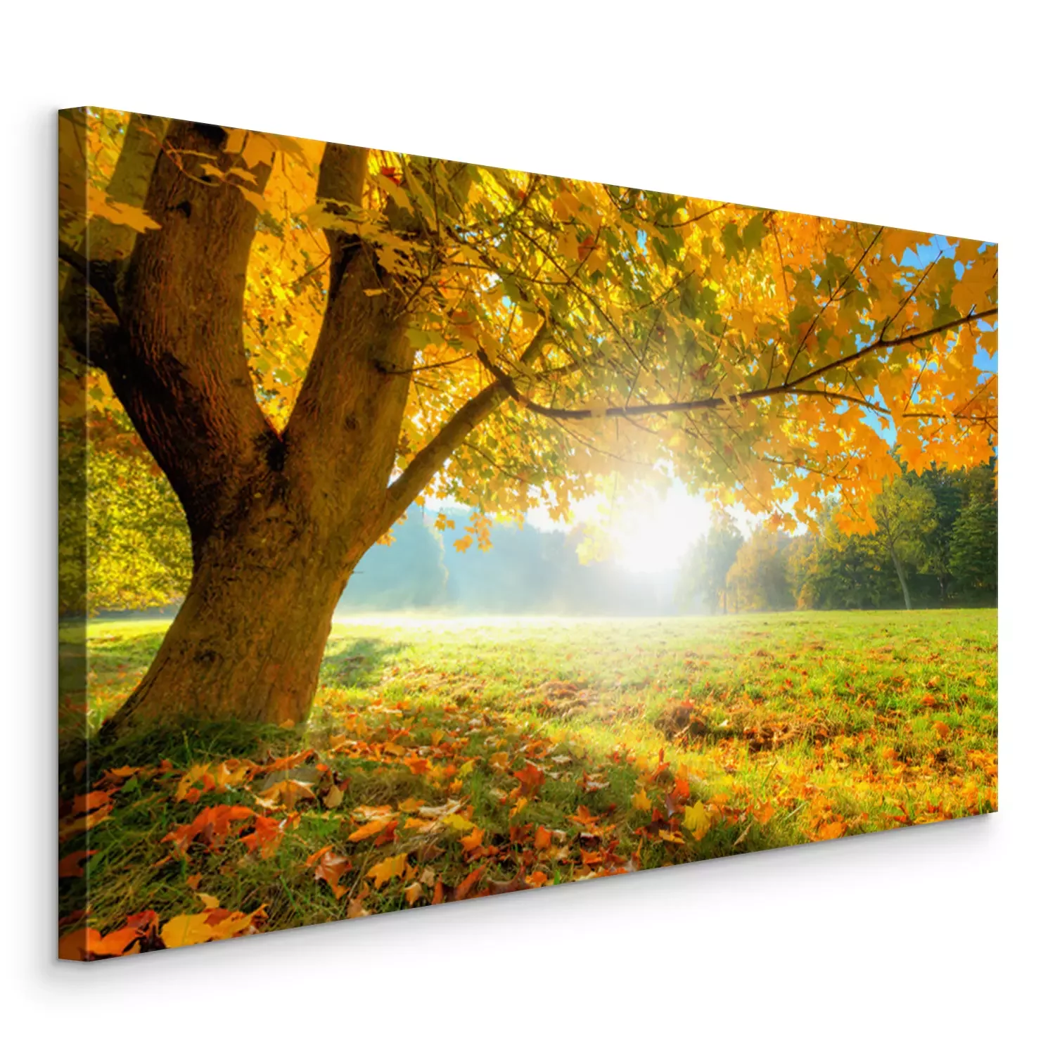 Canvas: Mooie herfst boom met gevallen droge bladeren
