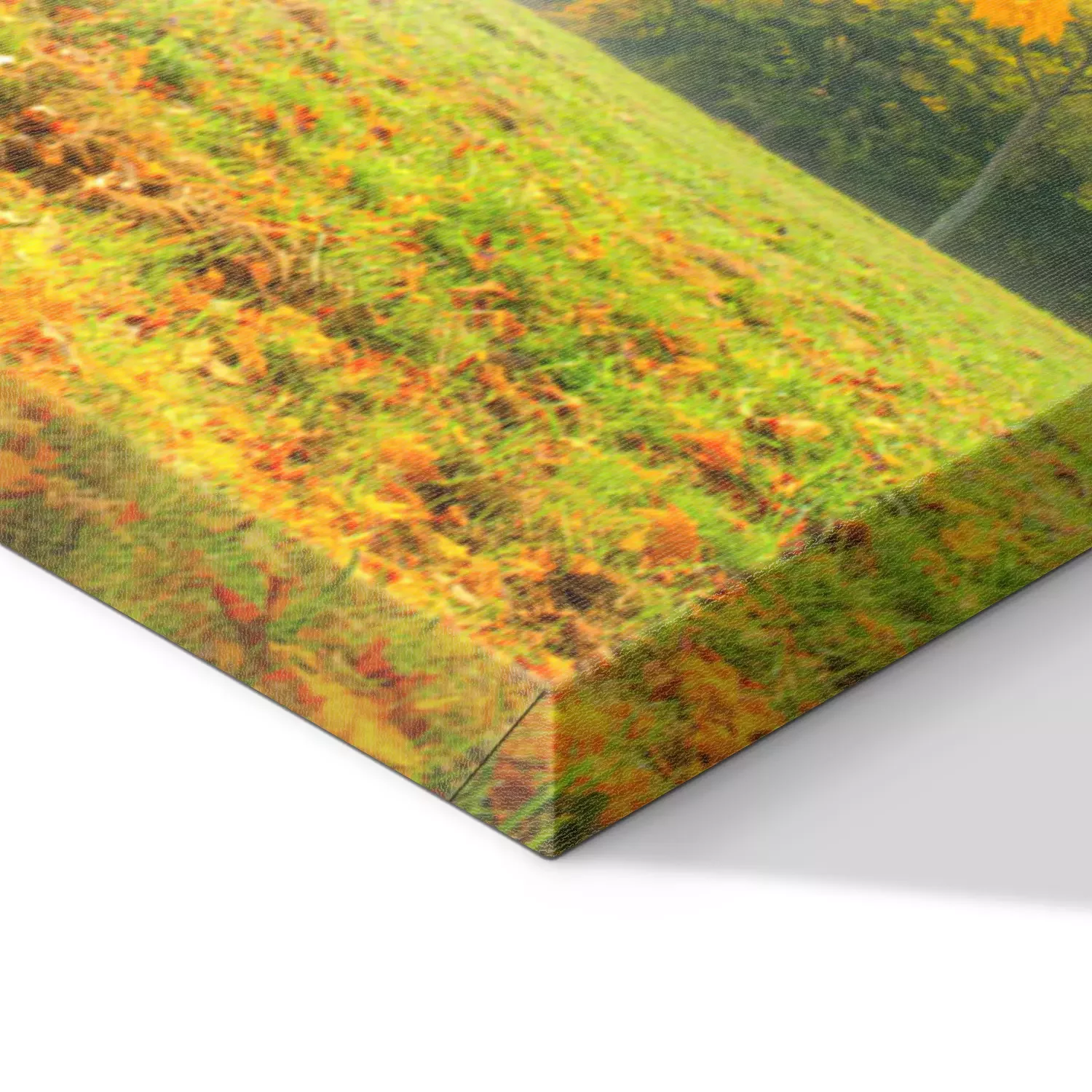 Canvas Mooie herfst boom met gevallen droge bladeren