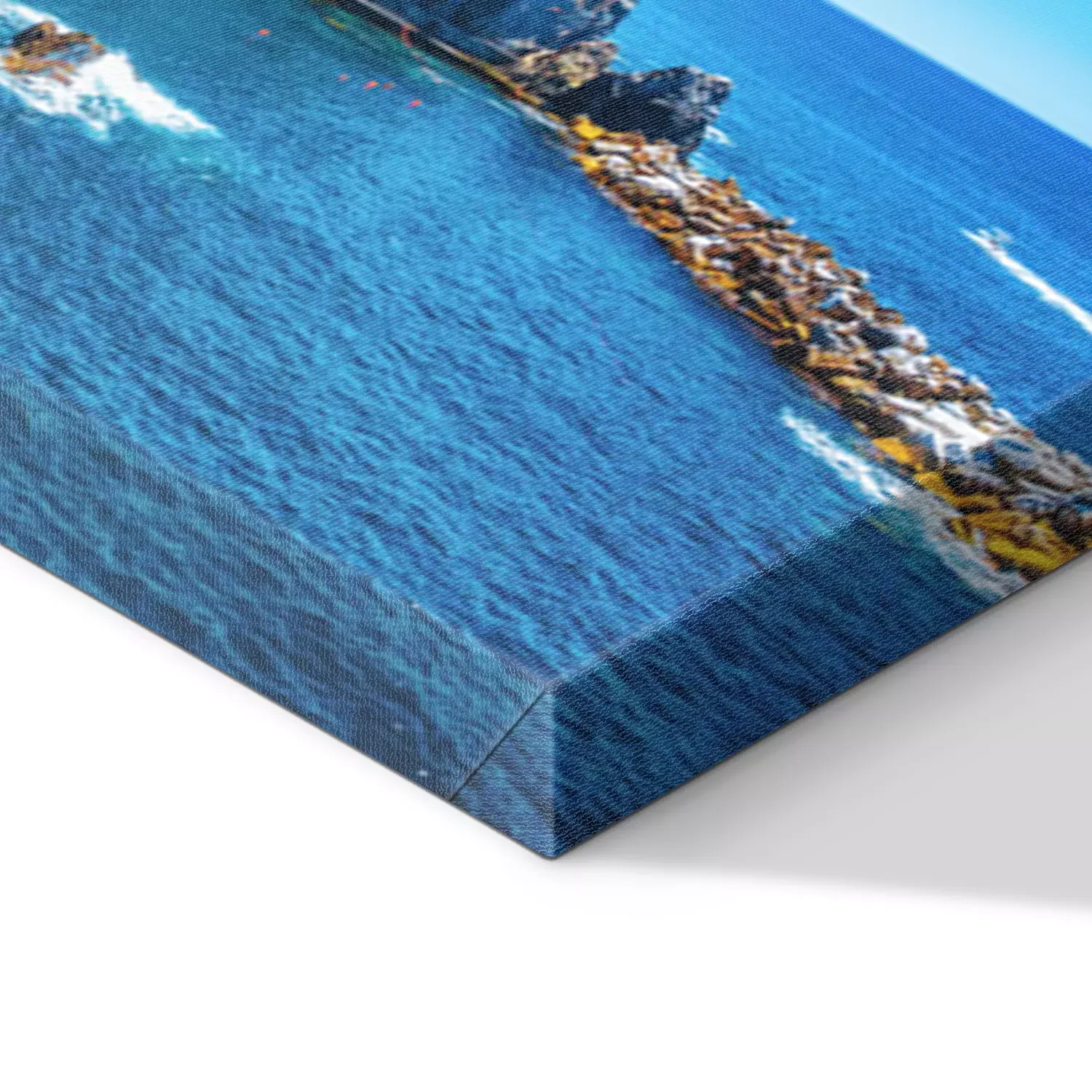 De print wordt aangebracht op hoogwaardig canvas dat op een schildersweefgetouw (spieraam) wordt gespannen. Omdat de print de zijranden bedekt, hoeft het ontwerp niet met een extra kader te worden omlijst. Wij raden ook composities aan die uit meerdere foto's bestaan en zo een coherente compositie vormen.
