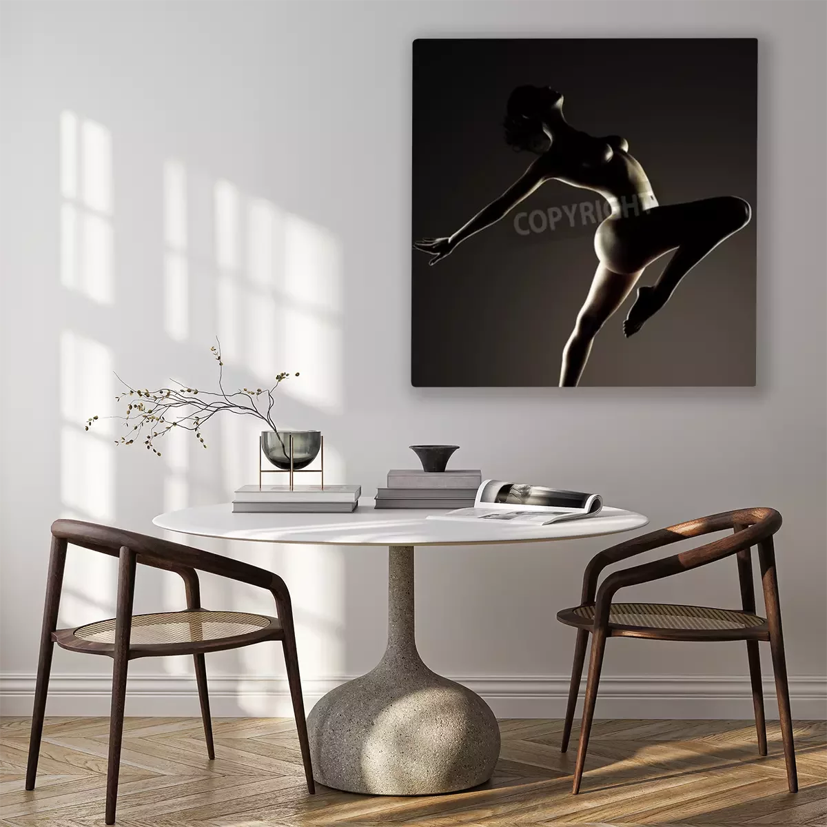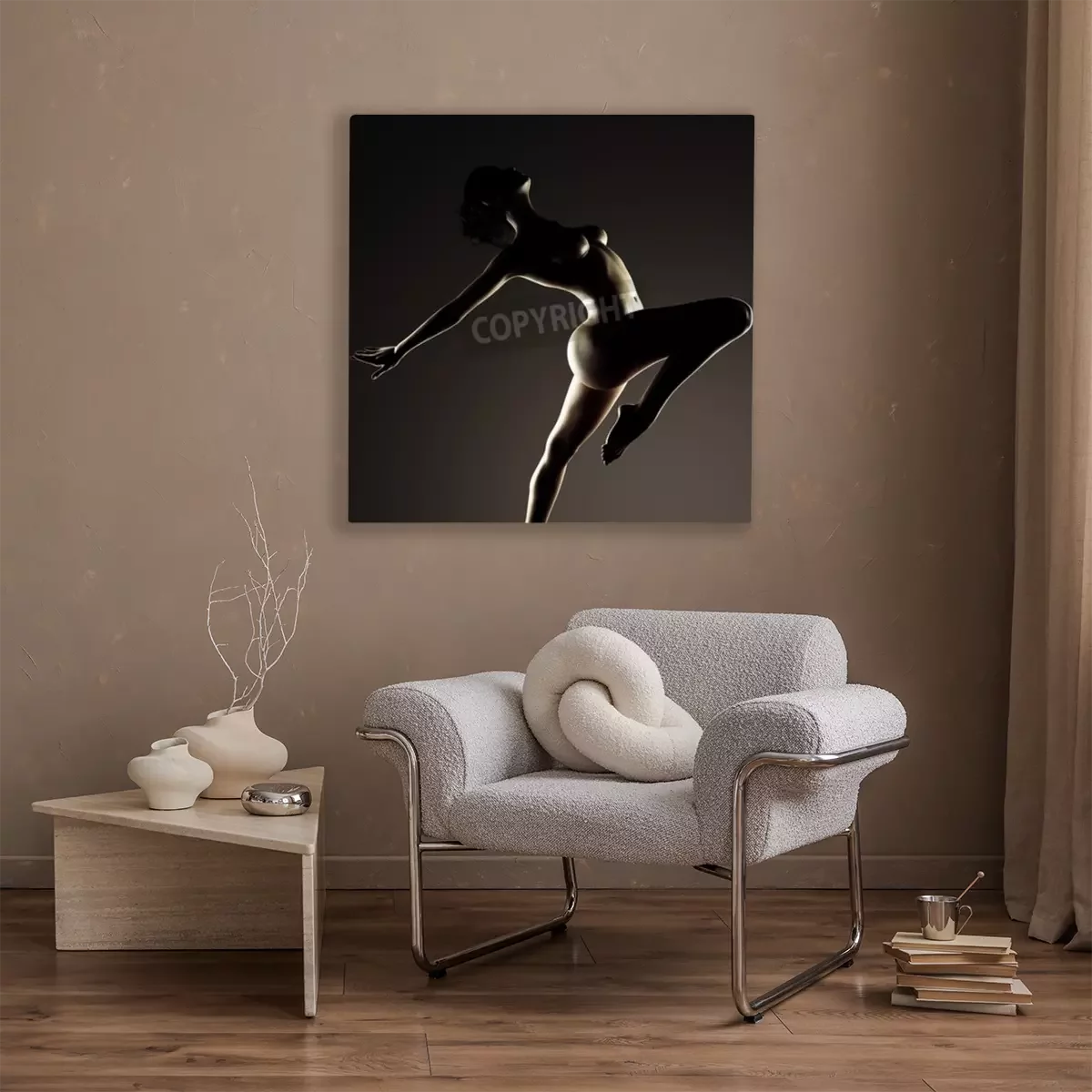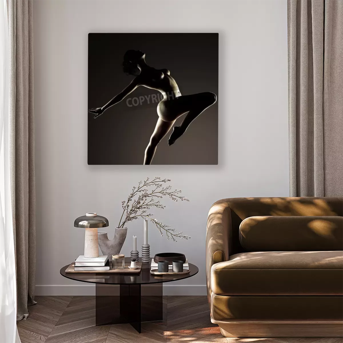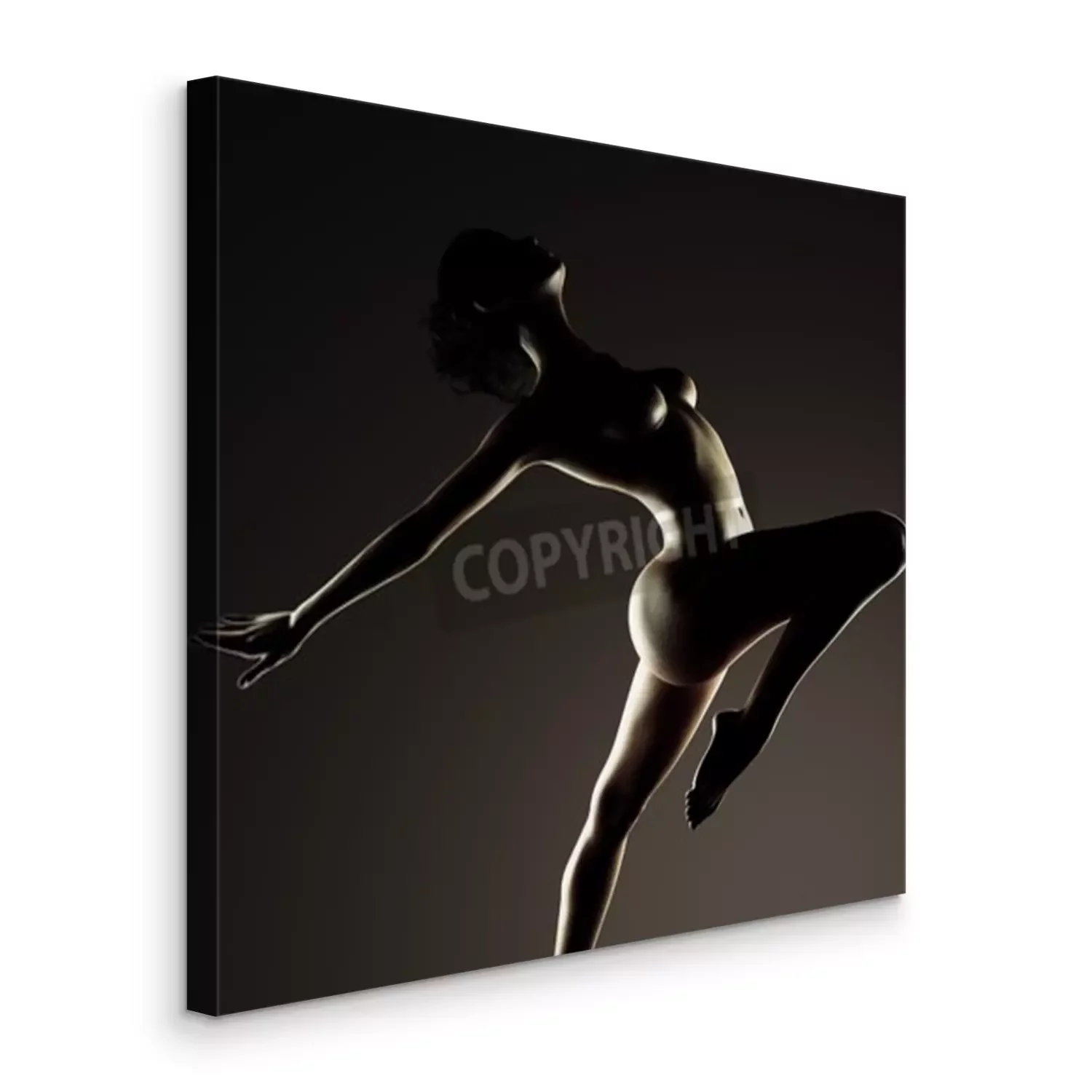 Canvas: Mooie naakte jonge vrouw in de donkere studio