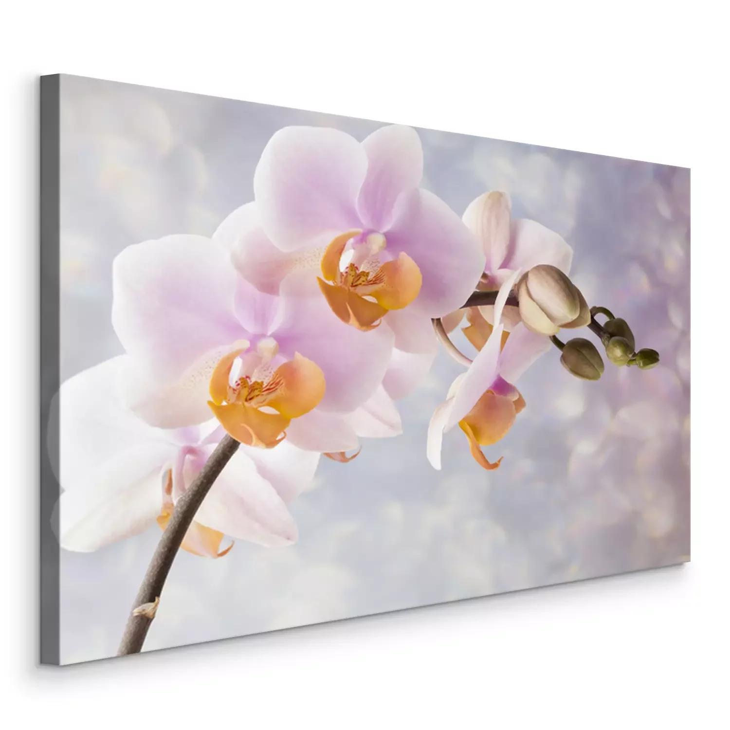 Canvas: Mooie roze orchidee op een grijze achtergrond.