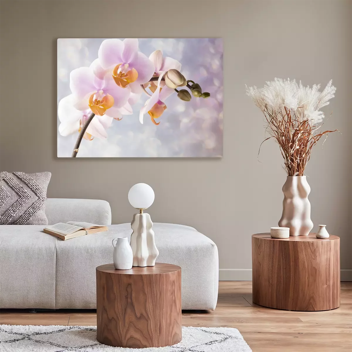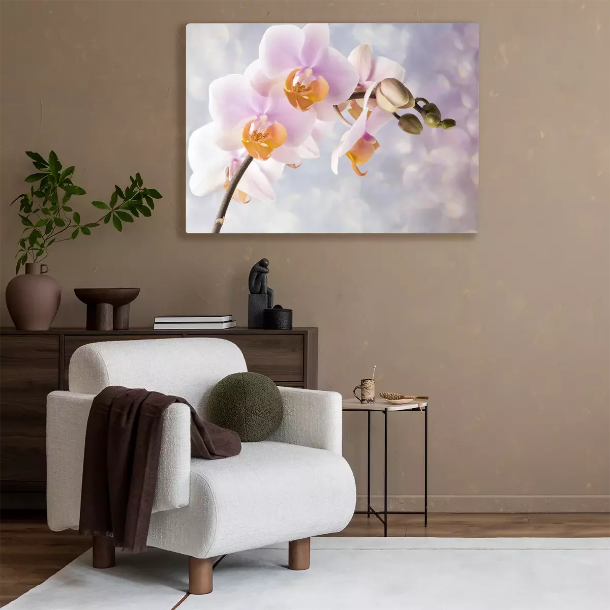 Canvas Mooie roze orchidee op een grijze achtergrond.