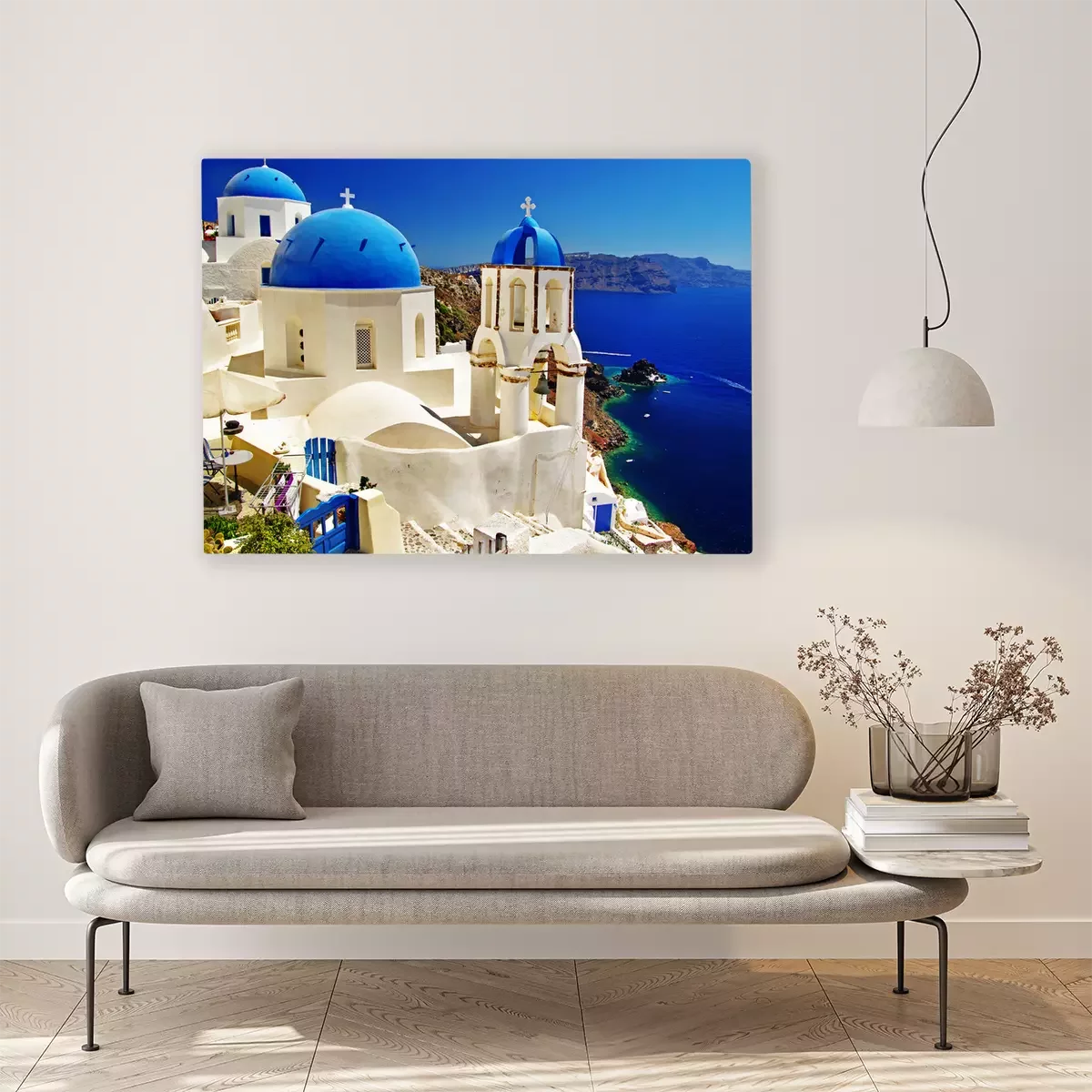 Canvas: mooie Santorini uitzicht op caldera met kerken