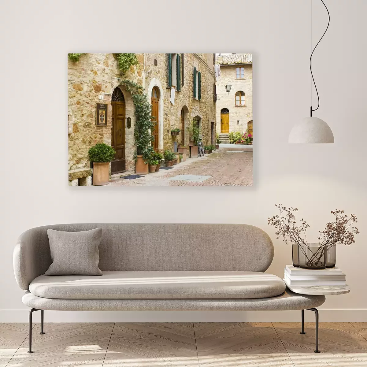 Canvas: Mooie Toscaanse straat, Pienza, Italië
