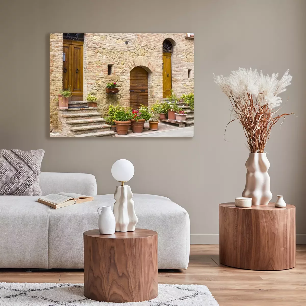 De print wordt aangebracht op hoogwaardig canvas dat op een schildersweefgetouw (spieraam) wordt gespannen. Omdat de print de zijranden bedekt, hoeft het ontwerp niet met een extra kader te worden omlijst. Wij raden ook composities aan die uit meerdere foto's bestaan en zo een coherente compositie vormen.