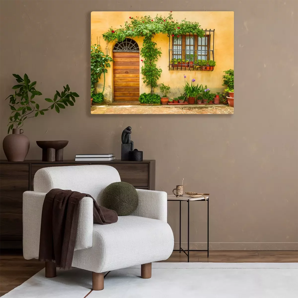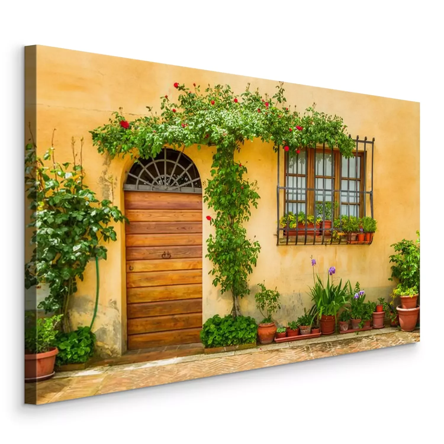 Canvas: Mooie veranda versierd met bloemen in italië