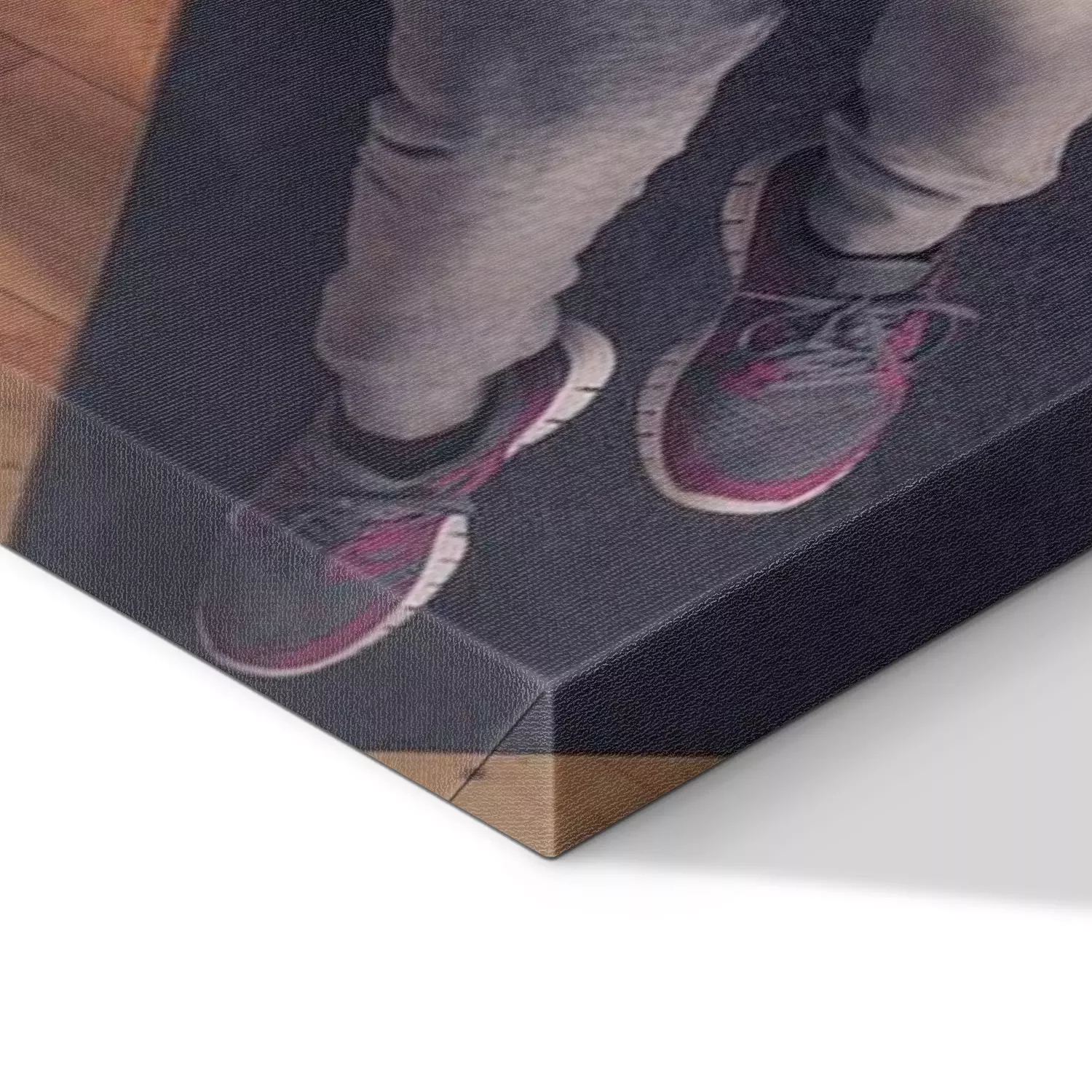 De print wordt aangebracht op hoogwaardig canvas dat op een schildersweefgetouw (spieraam) wordt gespannen. Omdat de print de zijranden bedekt, hoeft het ontwerp niet met een extra kader te worden omlijst. Wij raden ook composities aan die uit meerdere foto's bestaan en zo een coherente compositie vormen.