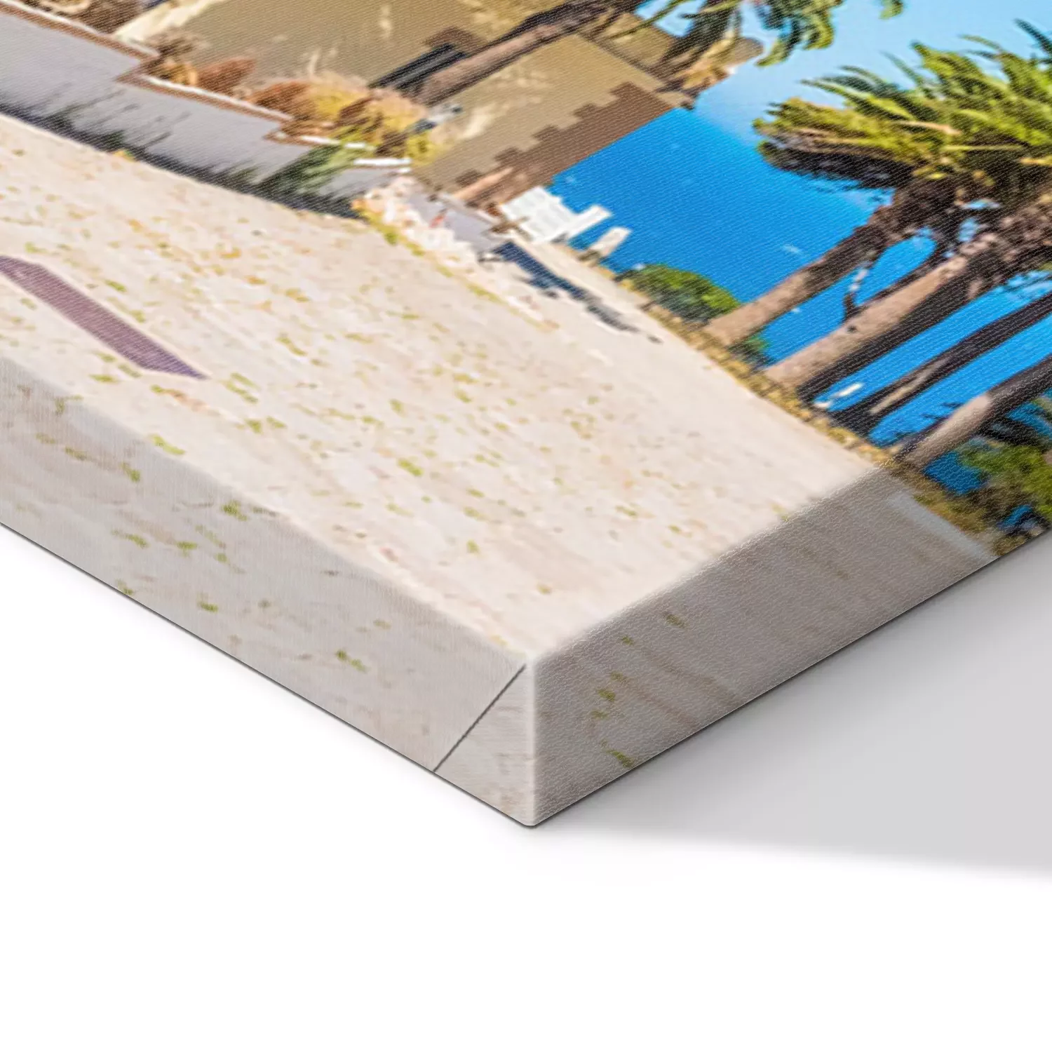 De print wordt aangebracht op hoogwaardig canvas dat op een schildersweefgetouw (spieraam) wordt gespannen. Omdat de print de zijranden bedekt, hoeft het ontwerp niet met een extra kader te worden omlijst. Wij raden ook composities aan die uit meerdere foto's bestaan en zo een coherente compositie vormen.