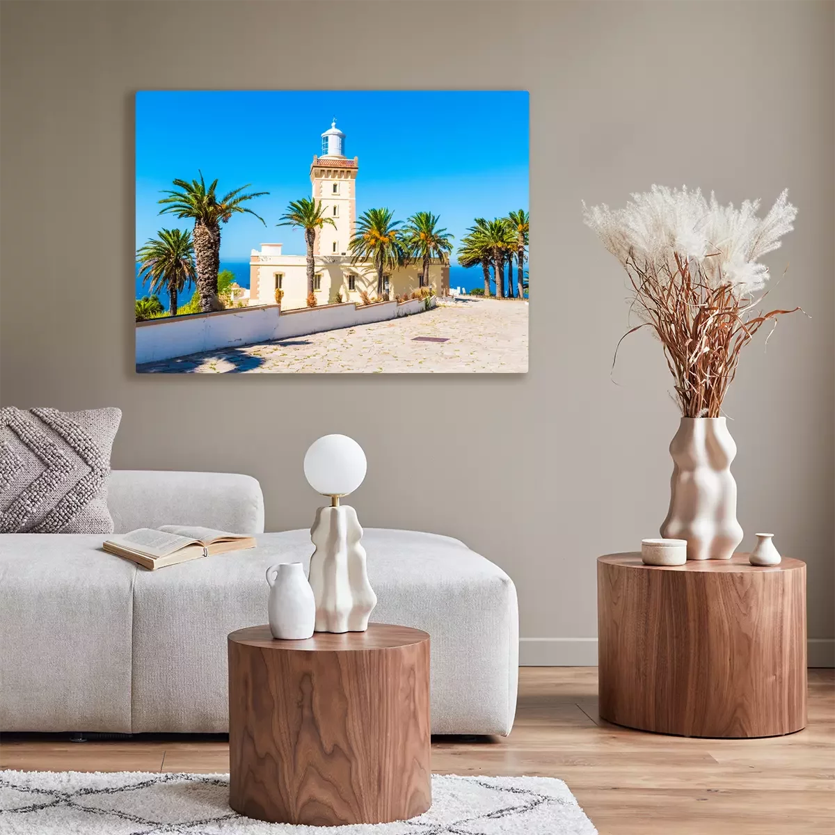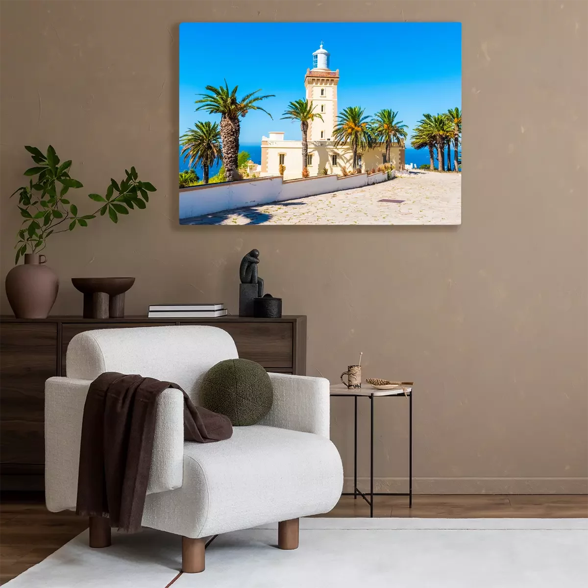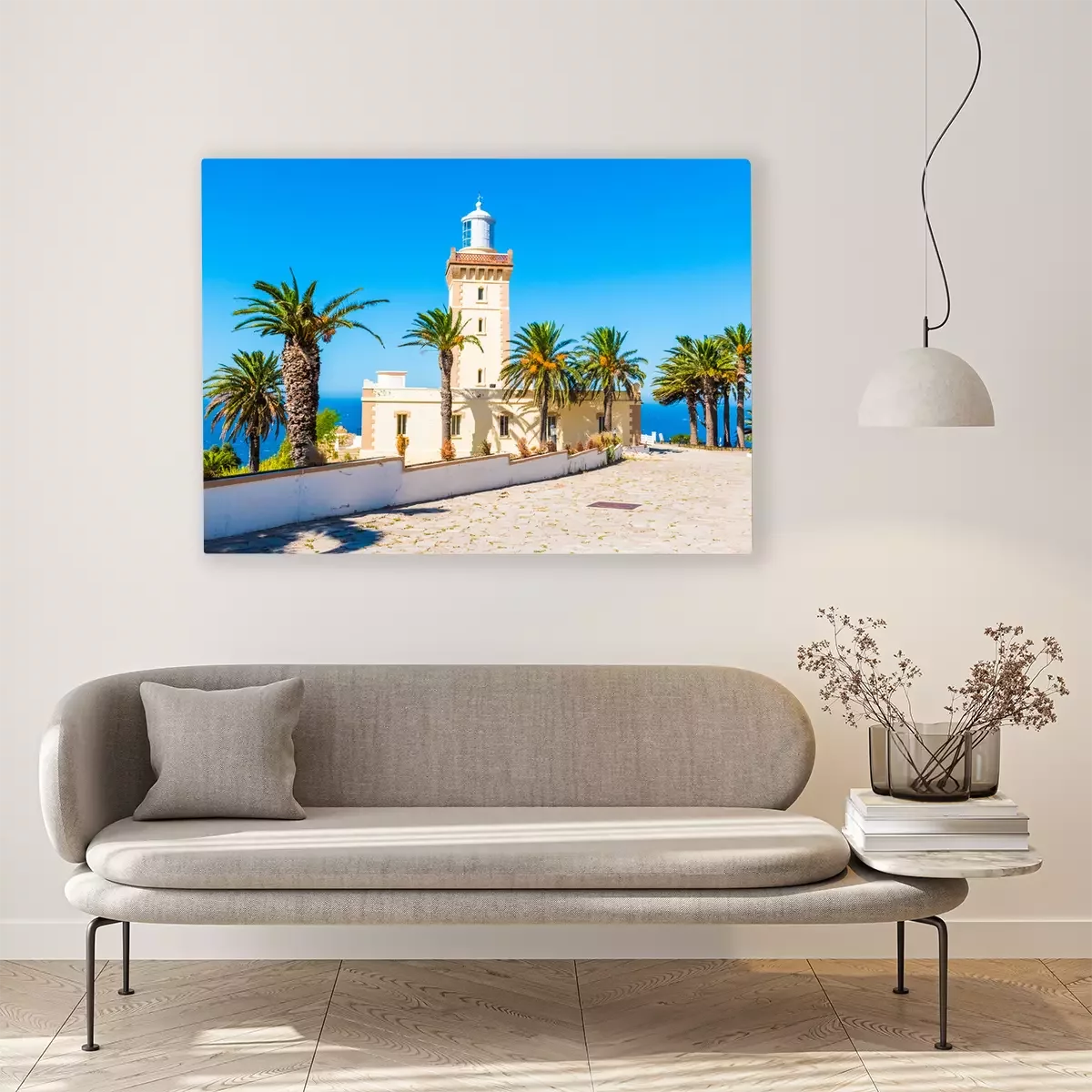 Canvas: Mooie Vuurtoren van Cap Spartel dicht bij de stad van Tanger en Gibraltar, Marokko in Afrika