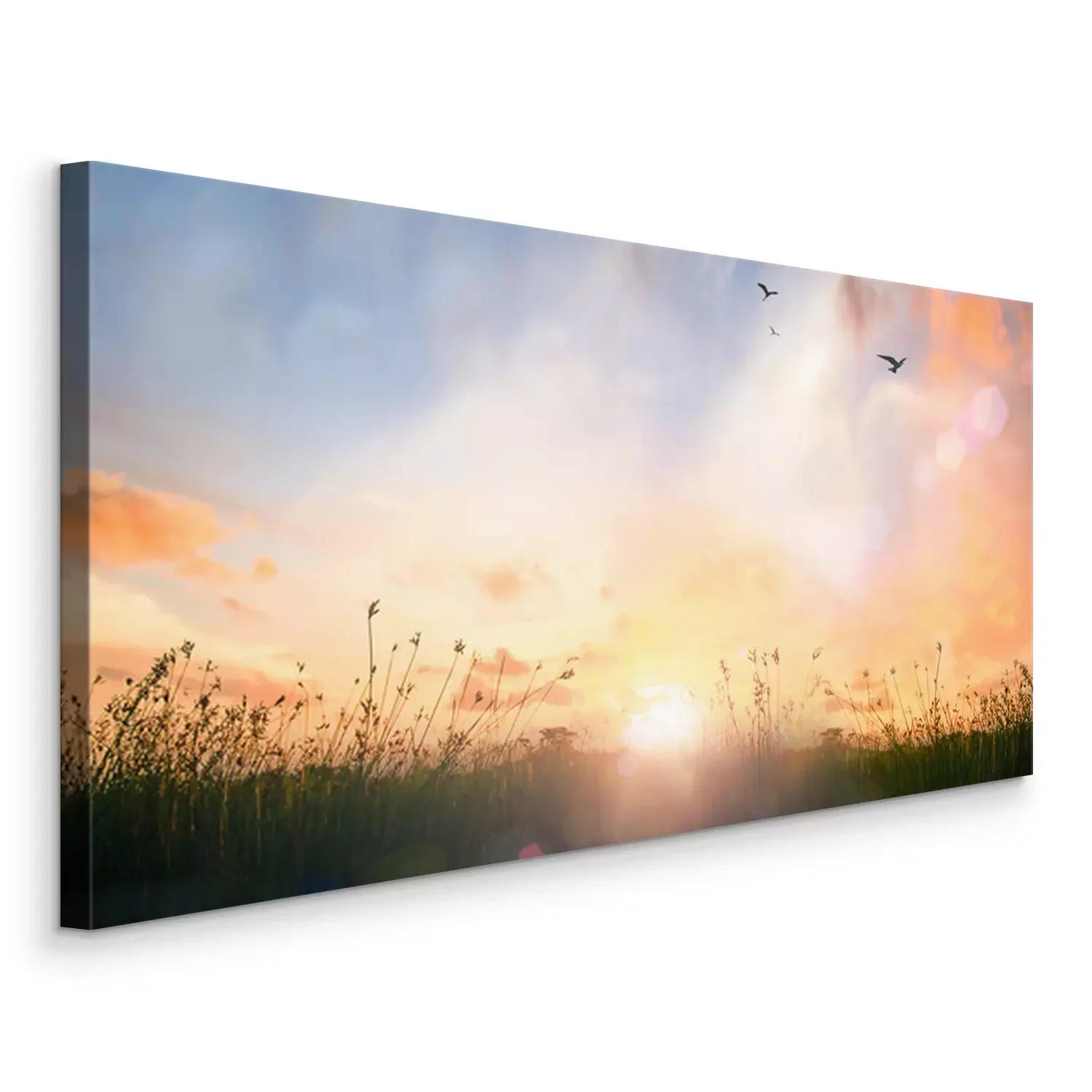 Canvas Mooie weide en hemelzonsopgangachtergrond.