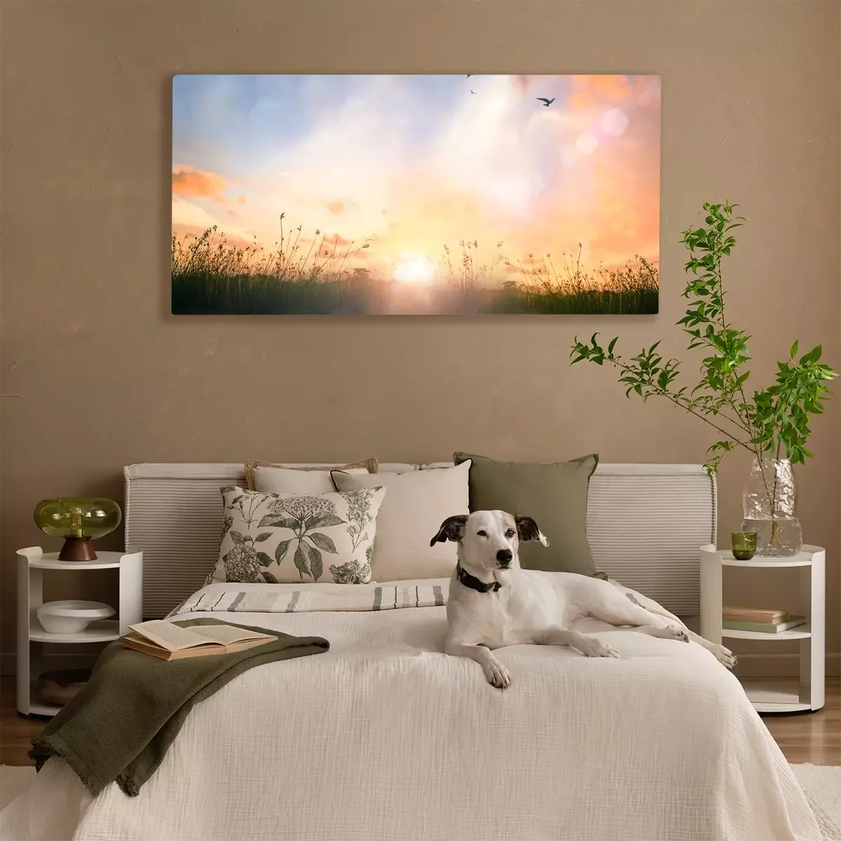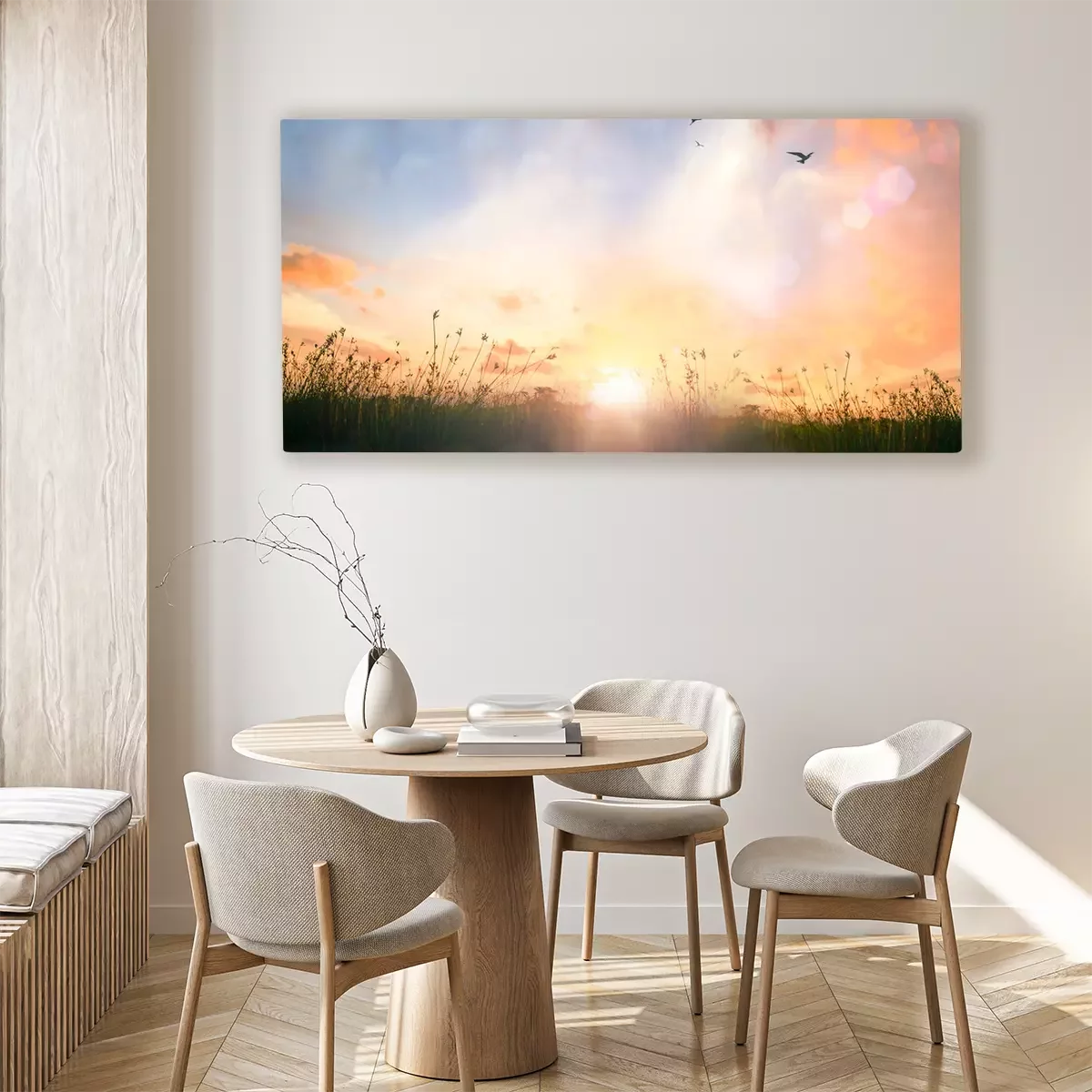Canvas: Mooie weide en hemelzonsopgangachtergrond.