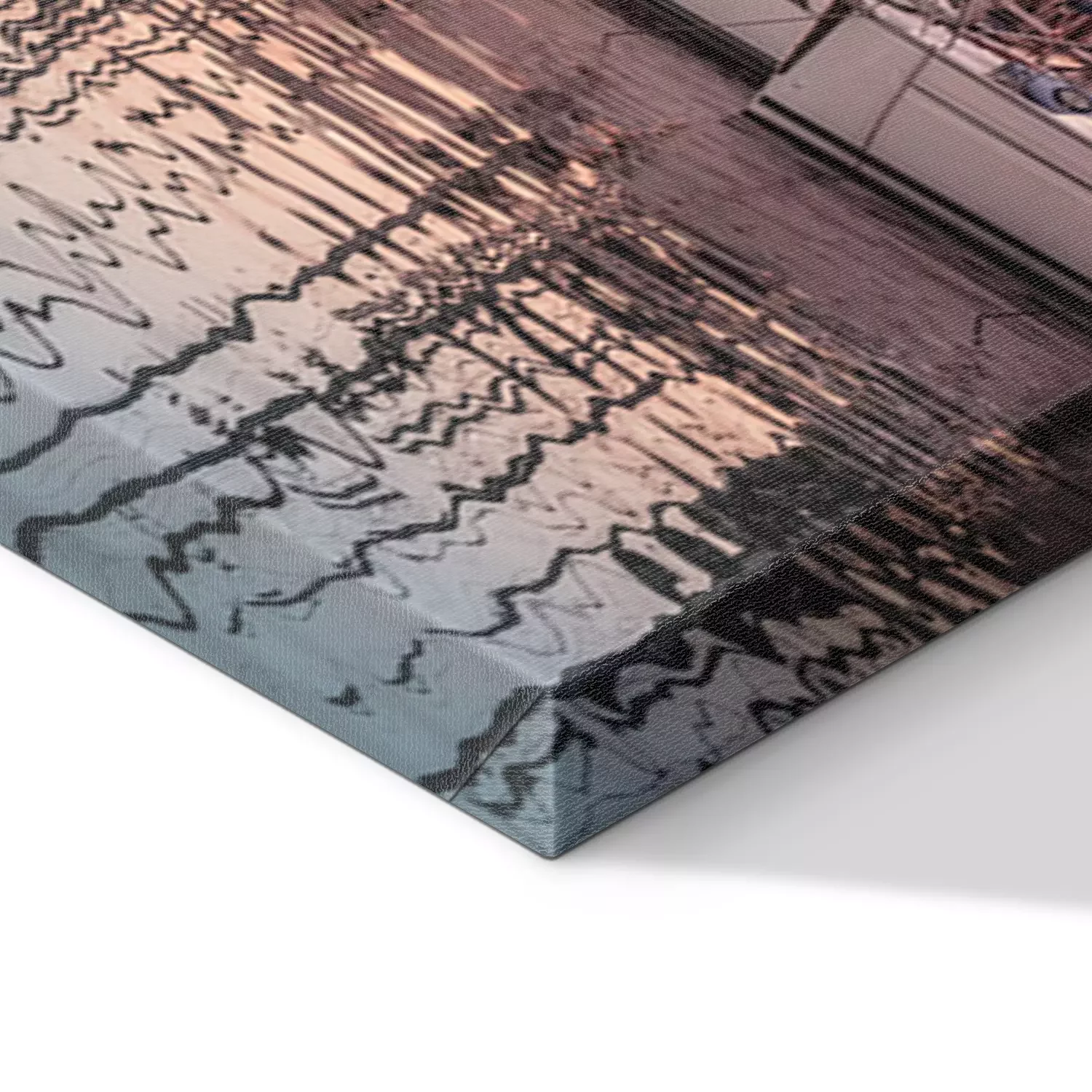 De print wordt aangebracht op hoogwaardig canvas dat op een schildersweefgetouw (spieraam) wordt gespannen. Omdat de print de zijranden bedekt, hoeft het ontwerp niet met een extra kader te worden omlijst. Wij raden ook composities aan die uit meerdere foto's bestaan en zo een coherente compositie vormen.