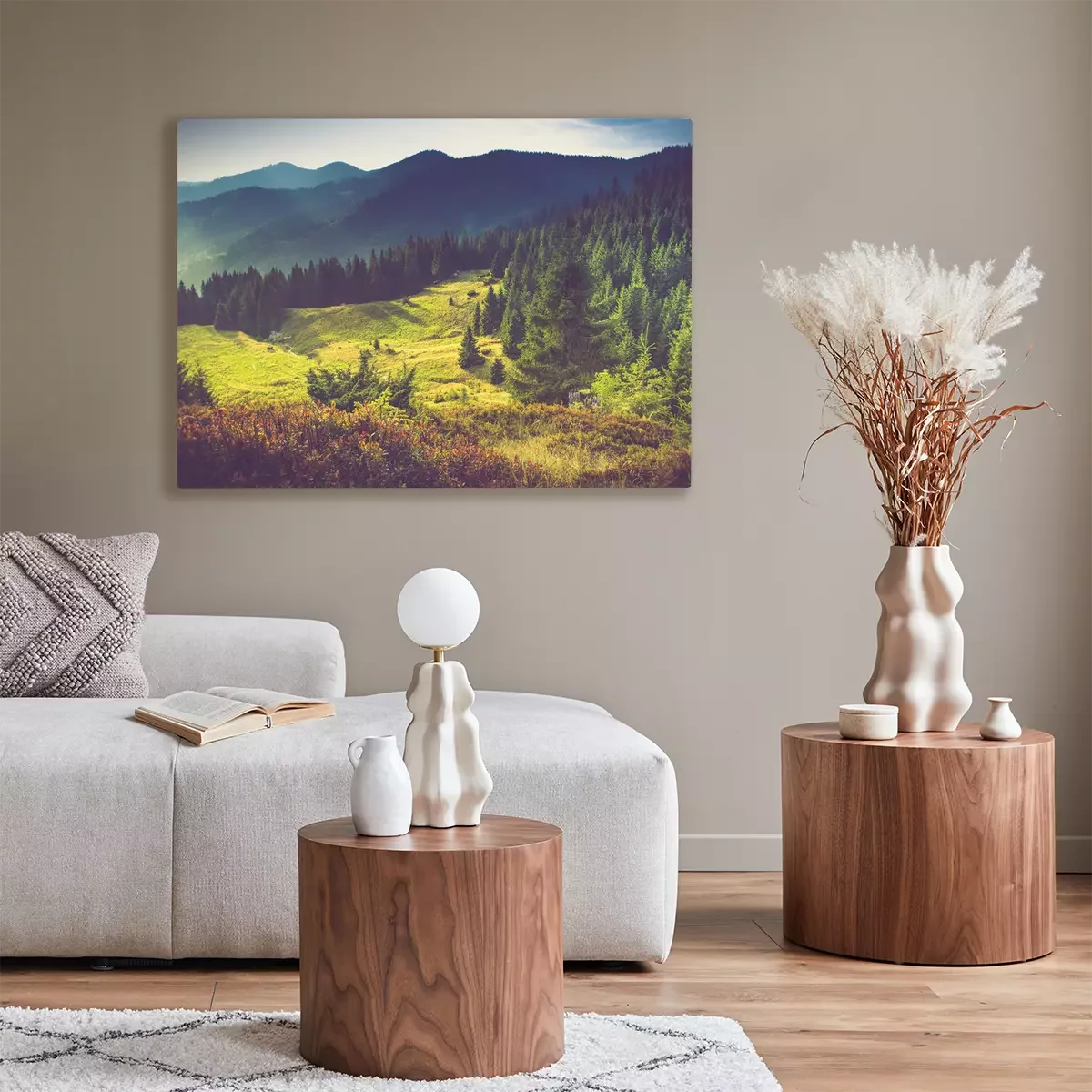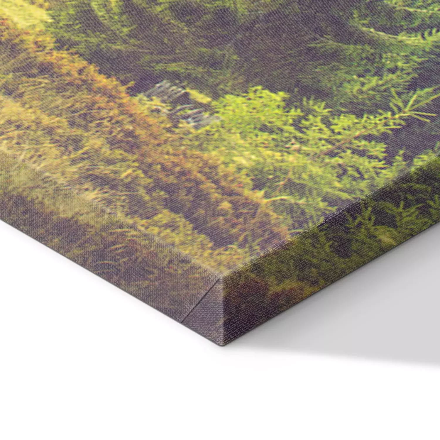 De print wordt aangebracht op hoogwaardig canvas dat op een schildersweefgetouw (spieraam) wordt gespannen. Omdat de print de zijranden bedekt, hoeft het ontwerp niet met een extra kader te worden omlijst. Wij raden ook composities aan die uit meerdere foto's bestaan en zo een coherente compositie vormen.