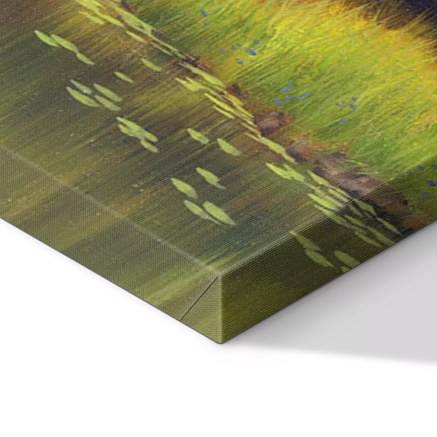De print wordt aangebracht op hoogwaardig canvas dat op een schildersweefgetouw (spieraam) wordt gespannen. Omdat de print de zijranden bedekt, hoeft het ontwerp niet met een extra kader te worden omlijst. Wij raden ook composities aan die uit meerdere foto's bestaan en zo een coherente compositie vormen.