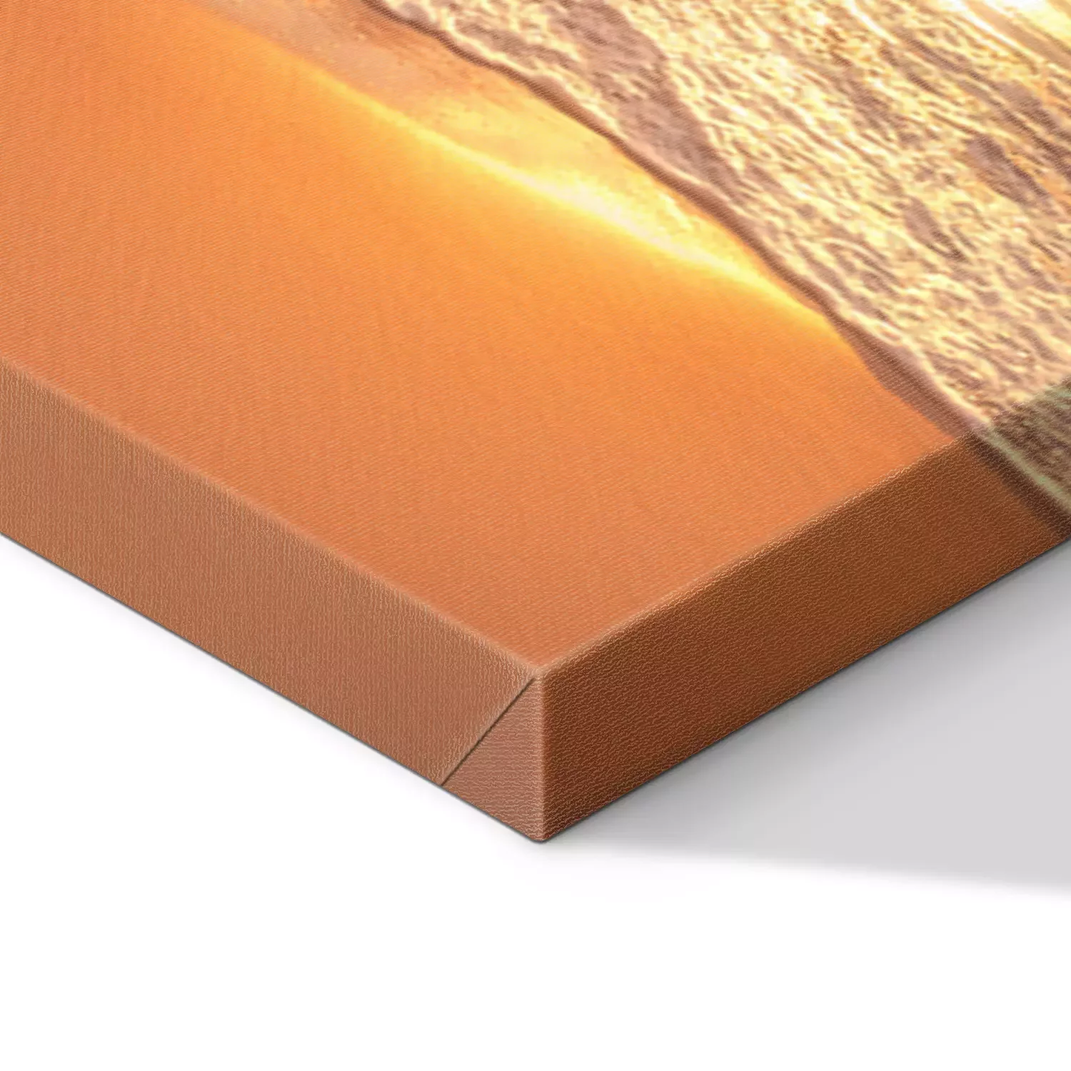De print wordt aangebracht op hoogwaardig canvas dat op een schildersweefgetouw (spieraam) wordt gespannen. Omdat de print de zijranden bedekt, hoeft het ontwerp niet met een extra kader te worden omlijst. Wij raden ook composities aan die uit meerdere foto's bestaan en zo een coherente compositie vormen.