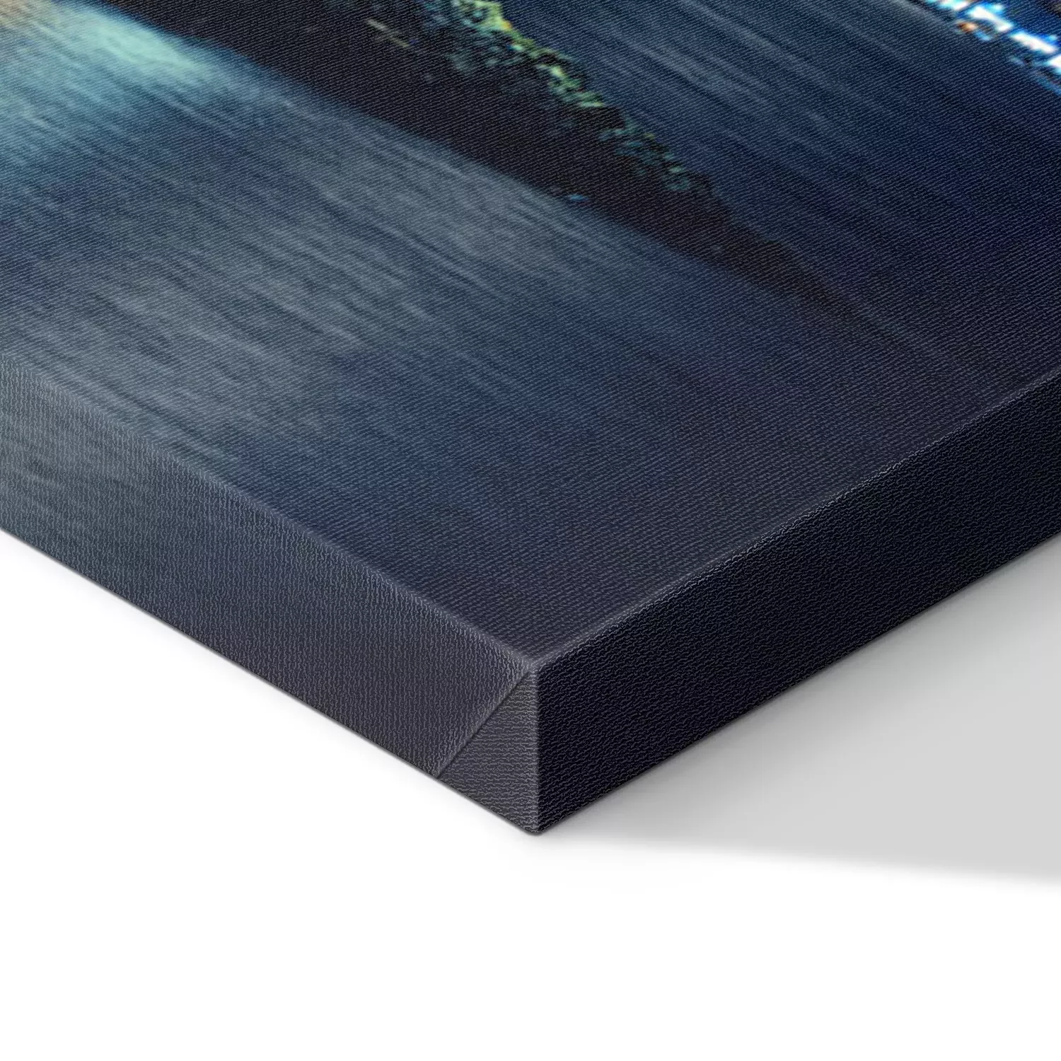 De print wordt aangebracht op hoogwaardig canvas dat op een schildersweefgetouw (spieraam) wordt gespannen. Omdat de print de zijranden bedekt, hoeft het ontwerp niet met een extra kader te worden omlijst. Wij raden ook composities aan die uit meerdere foto's bestaan en zo een coherente compositie vormen.