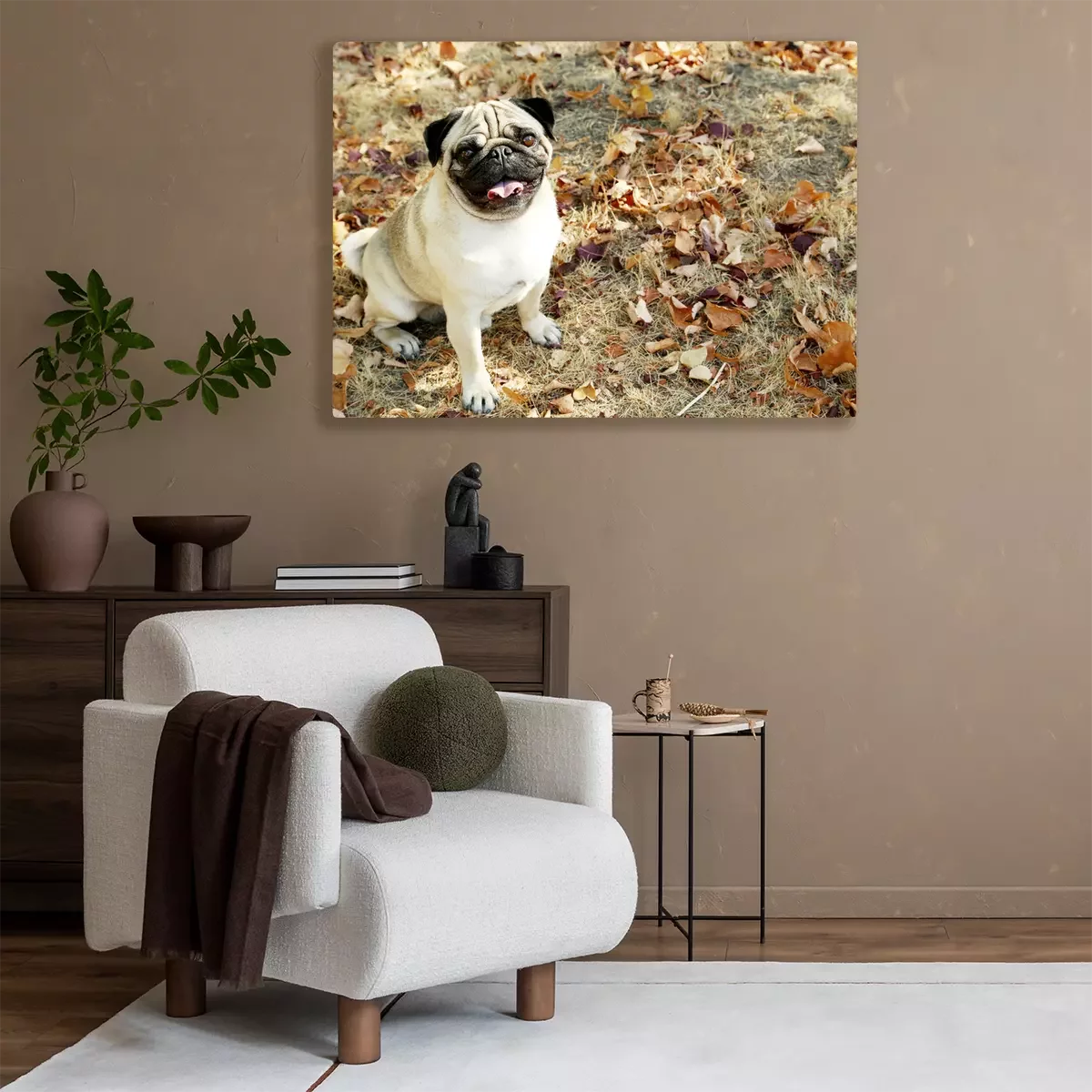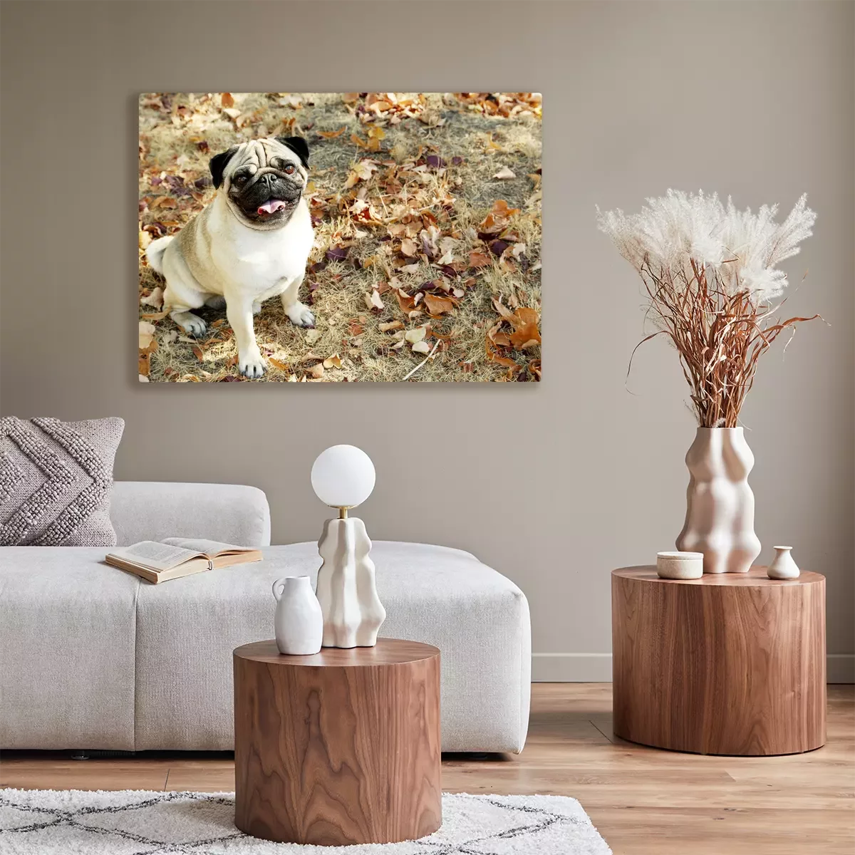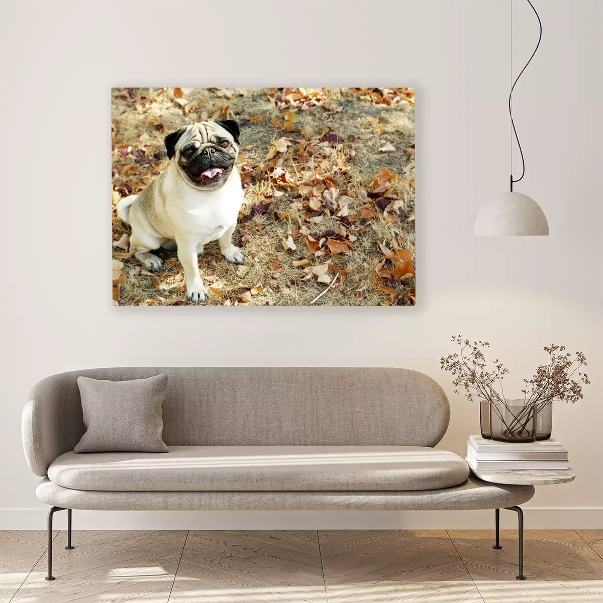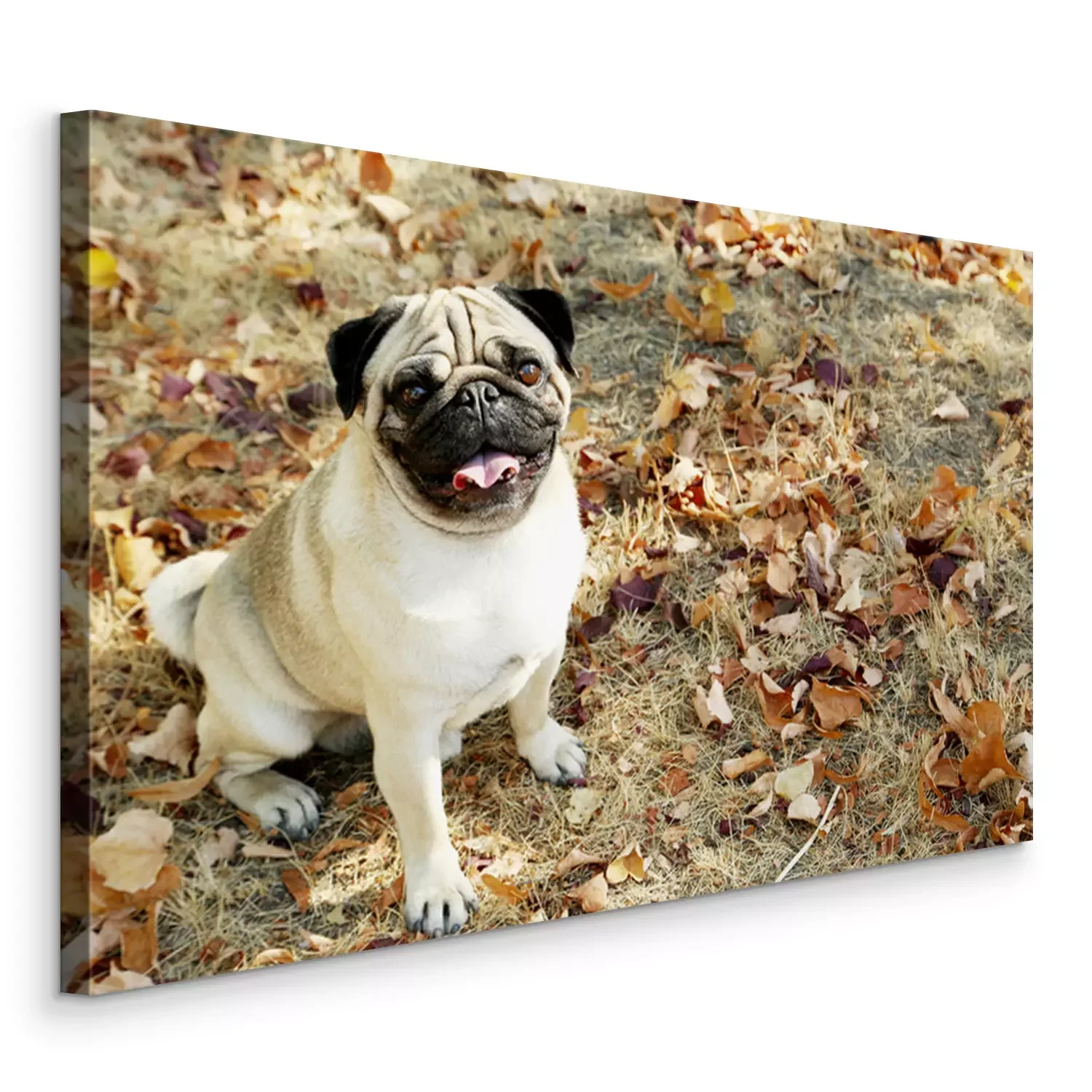Canvas: Mopshond in de herfst