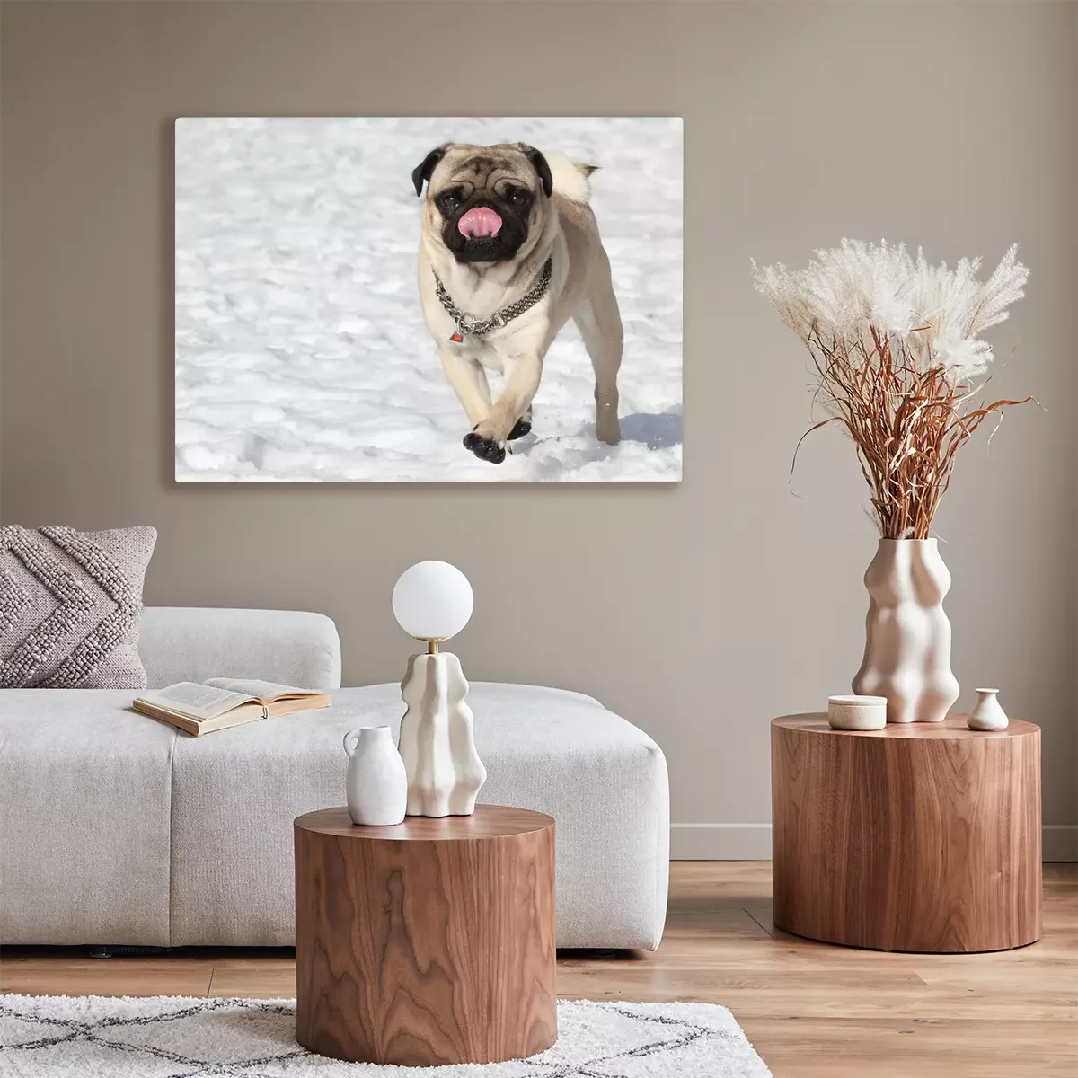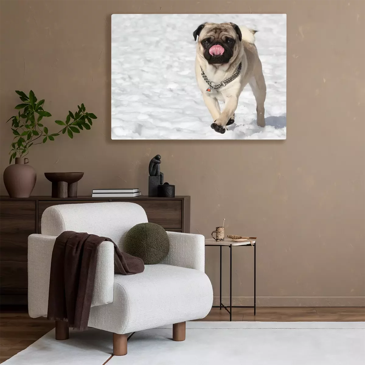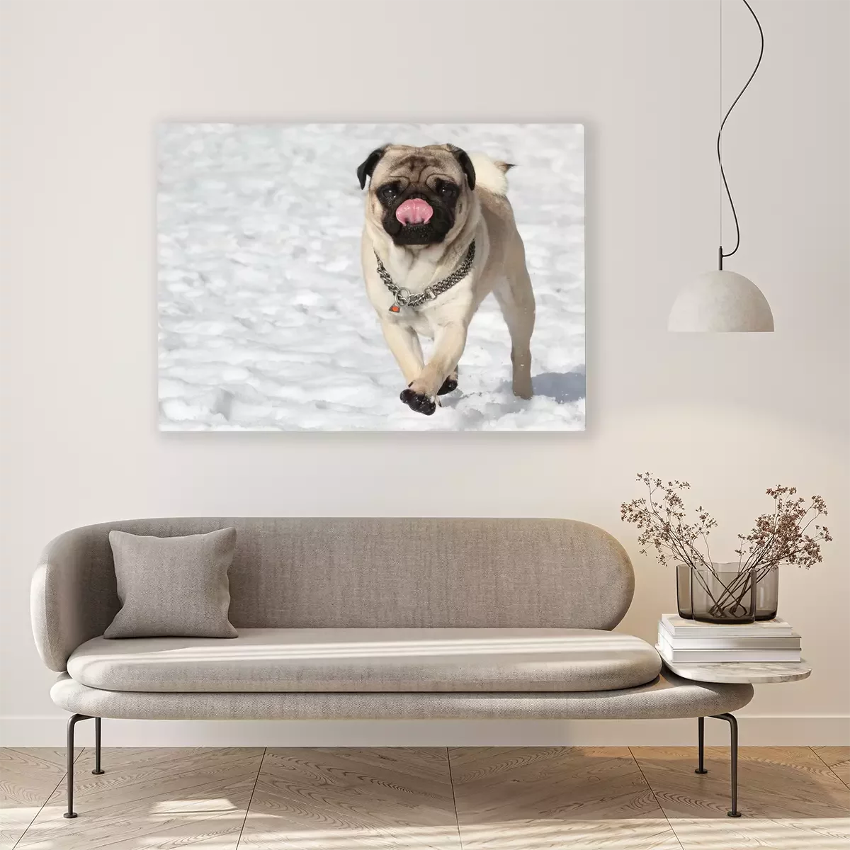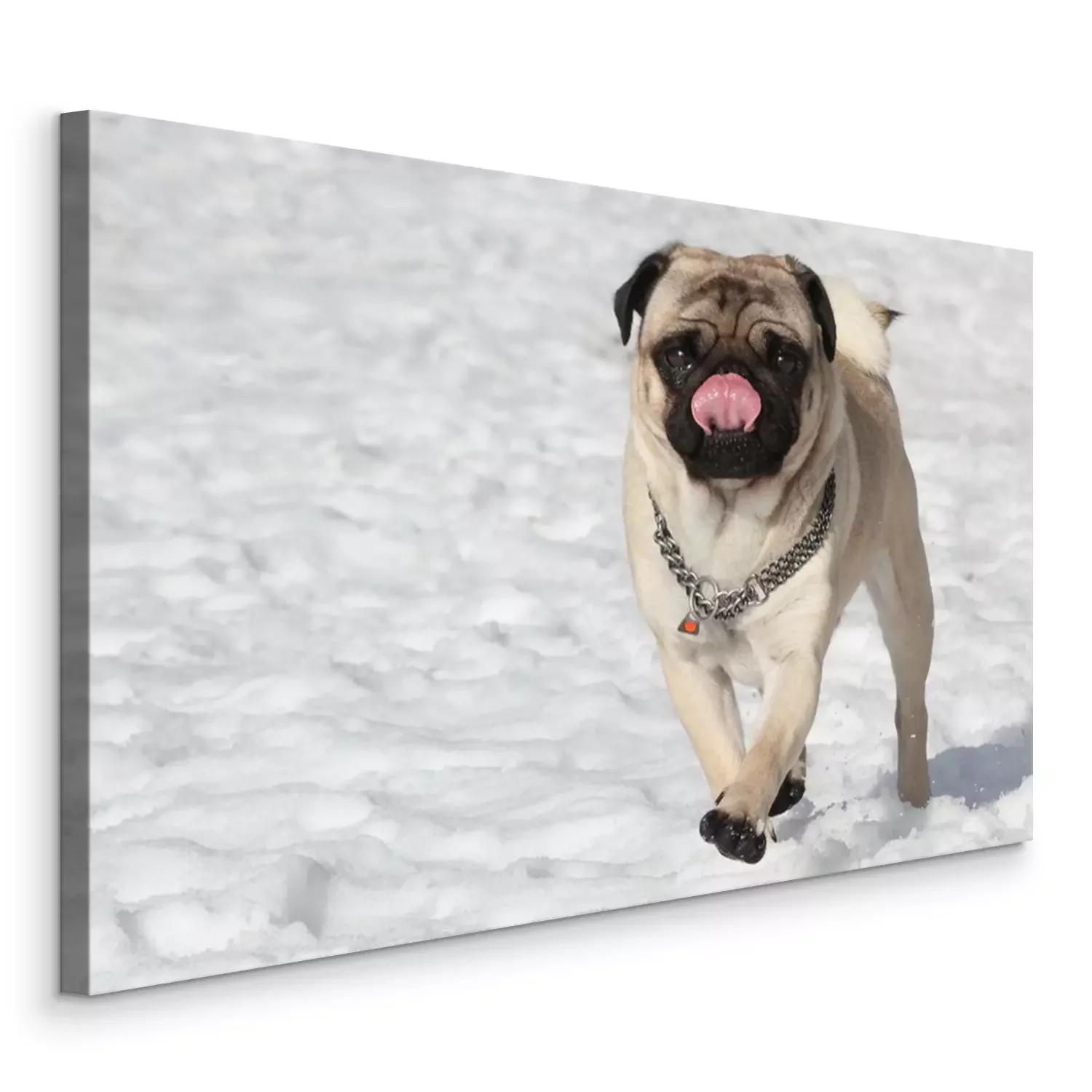 Canvas: Mopshond in de sneeuw