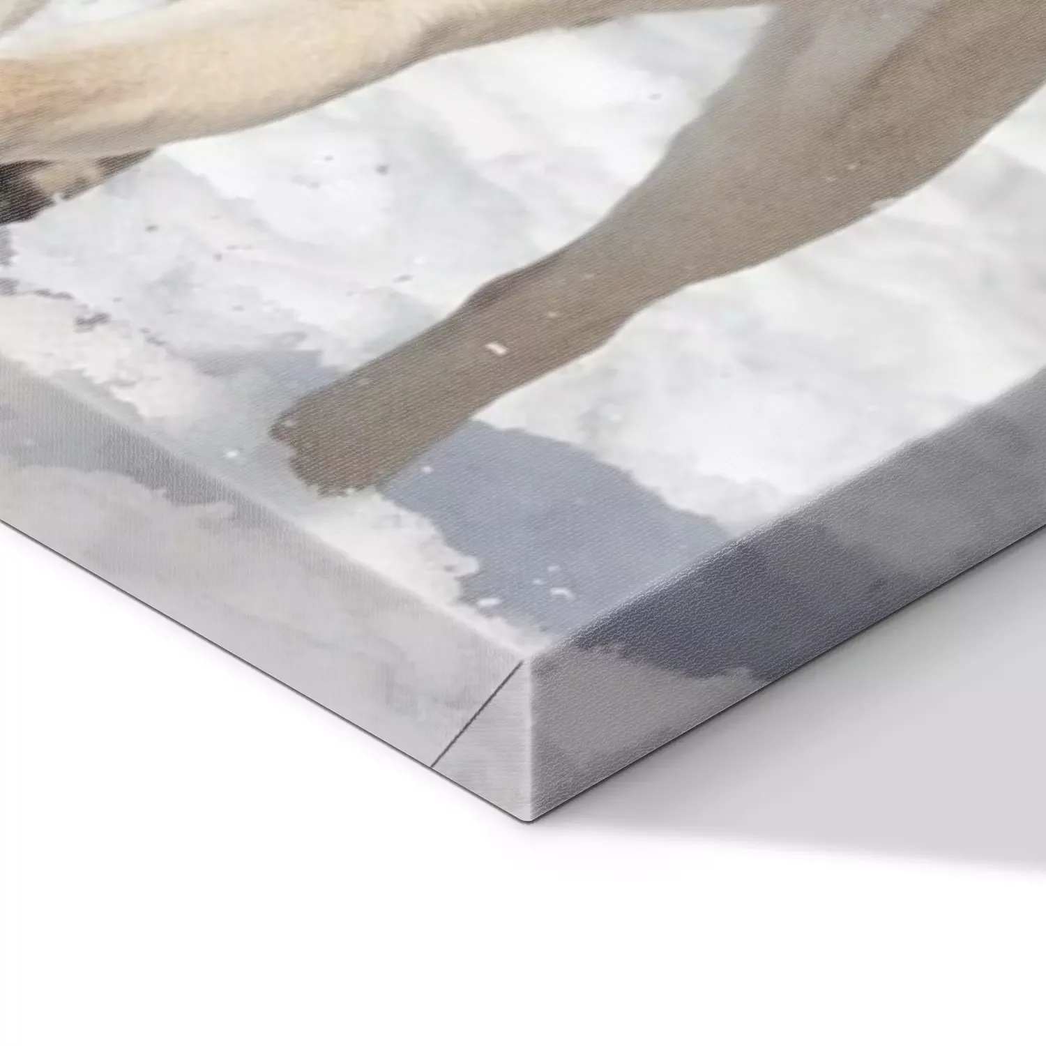 De print wordt aangebracht op hoogwaardig canvas dat op een schildersweefgetouw (spieraam) wordt gespannen. Omdat de print de zijranden bedekt, hoeft het ontwerp niet met een extra kader te worden omlijst. Wij raden ook composities aan die uit meerdere foto's bestaan en zo een coherente compositie vormen.