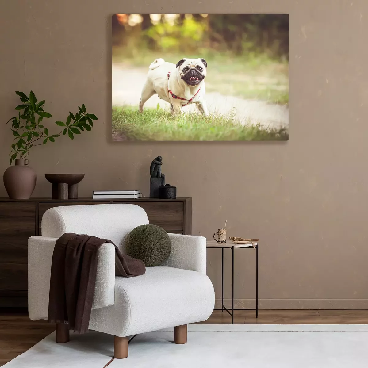 Canvas: Mopshond op stap