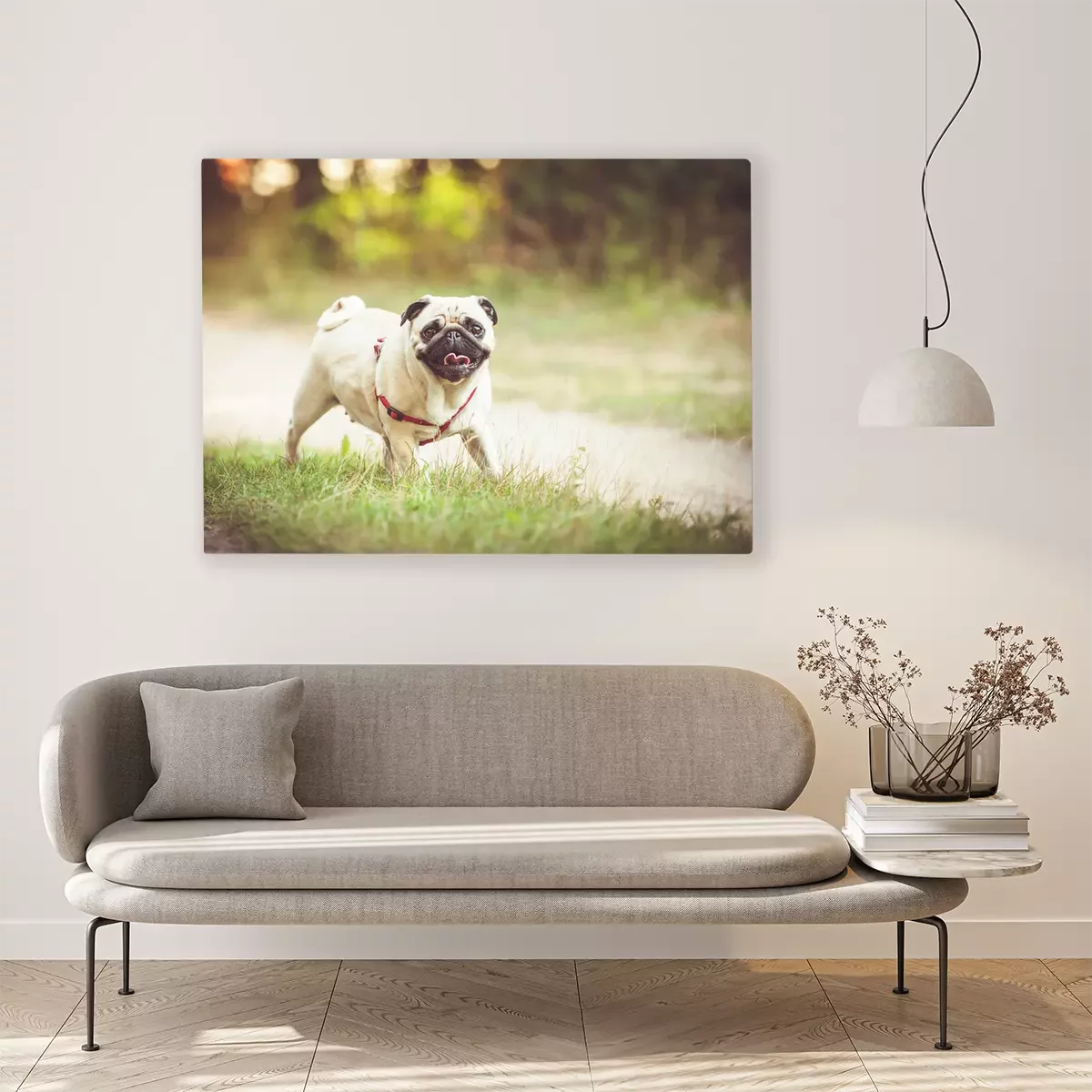 Canvas Mopshond op stap