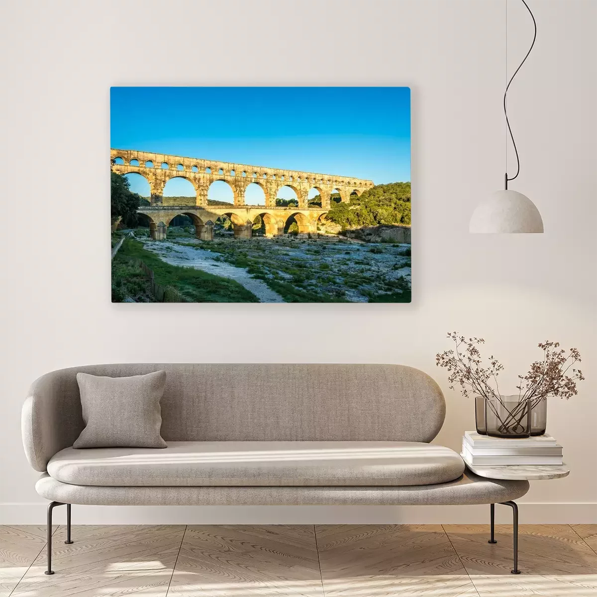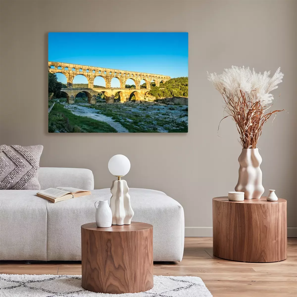 Canvas Morning uitzicht op het oude aquaduct Pont du Gard