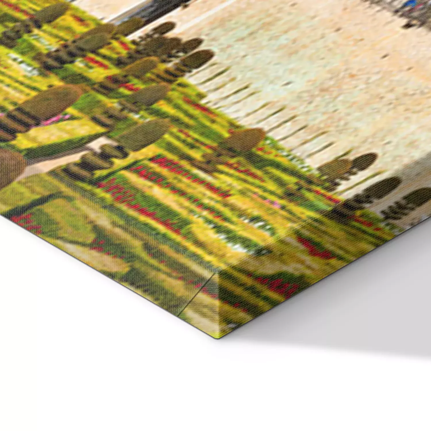 De print wordt aangebracht op hoogwaardig canvas dat op een schildersweefgetouw (spieraam) wordt gespannen. Omdat de print de zijranden bedekt, hoeft het ontwerp niet met een extra kader te worden omlijst. Wij raden ook composities aan die uit meerdere foto's bestaan en zo een coherente compositie vormen.
