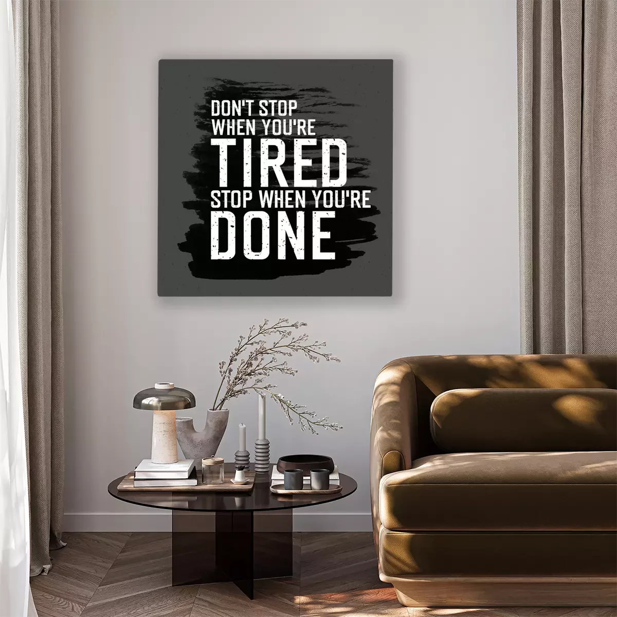 Canvas: Motieven affiche met het van letters "Don`t stoppen als je bent moe