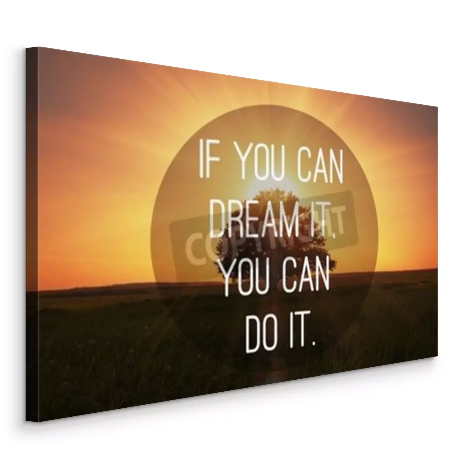 Canvas: Motievendiecitaat te dromen uitgekomen op magische zonsondergang met boom achtergrond