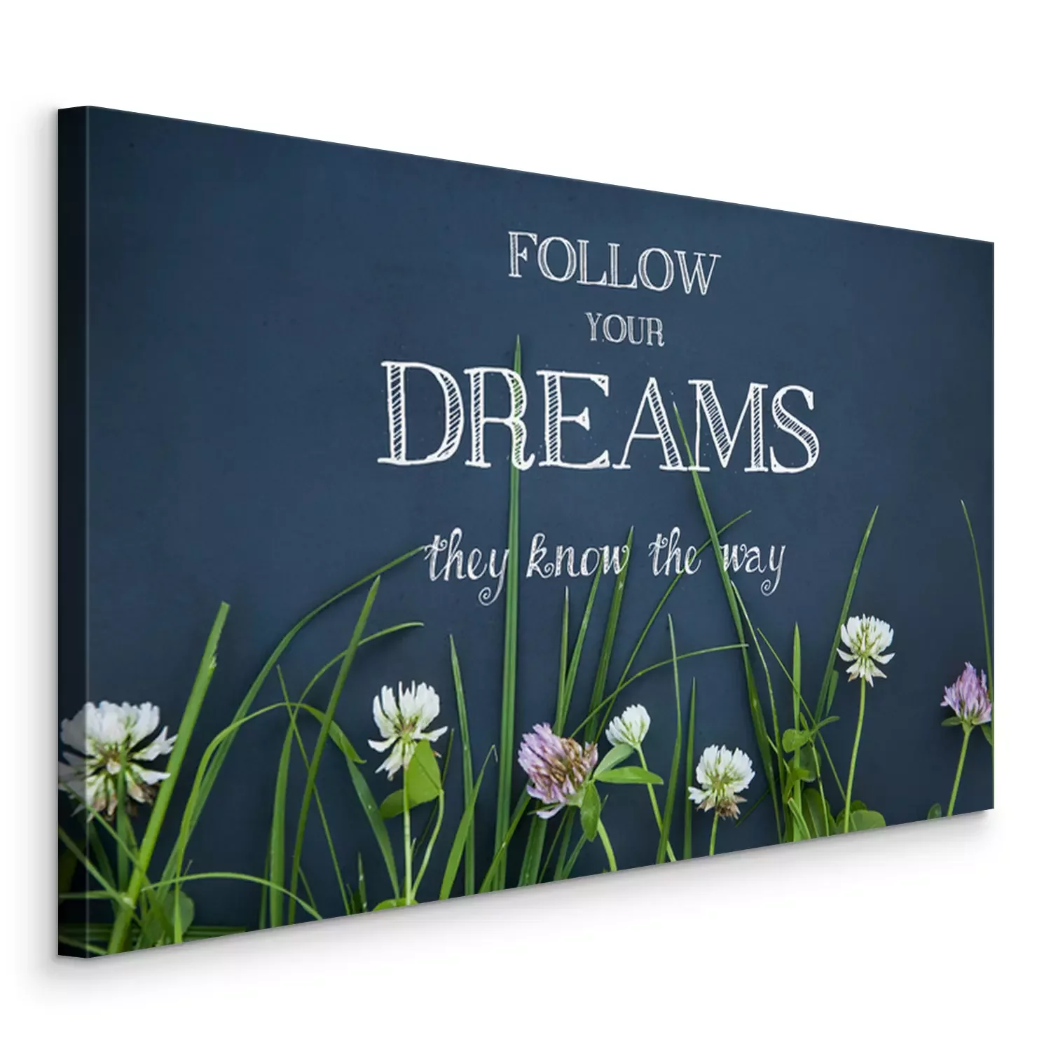 Canvas motievendiecitaat VOLG UW DROMEN op zwarte achtergrond