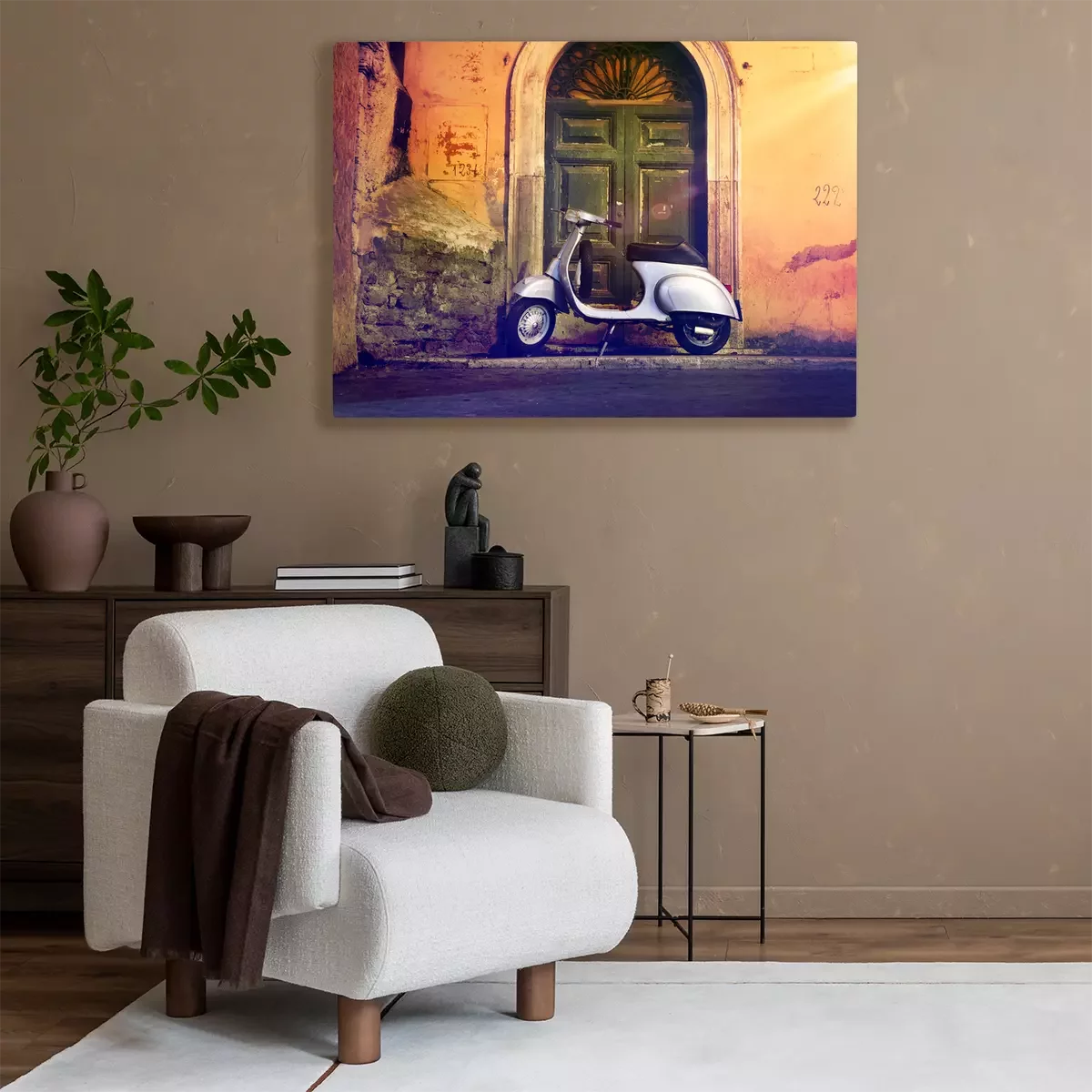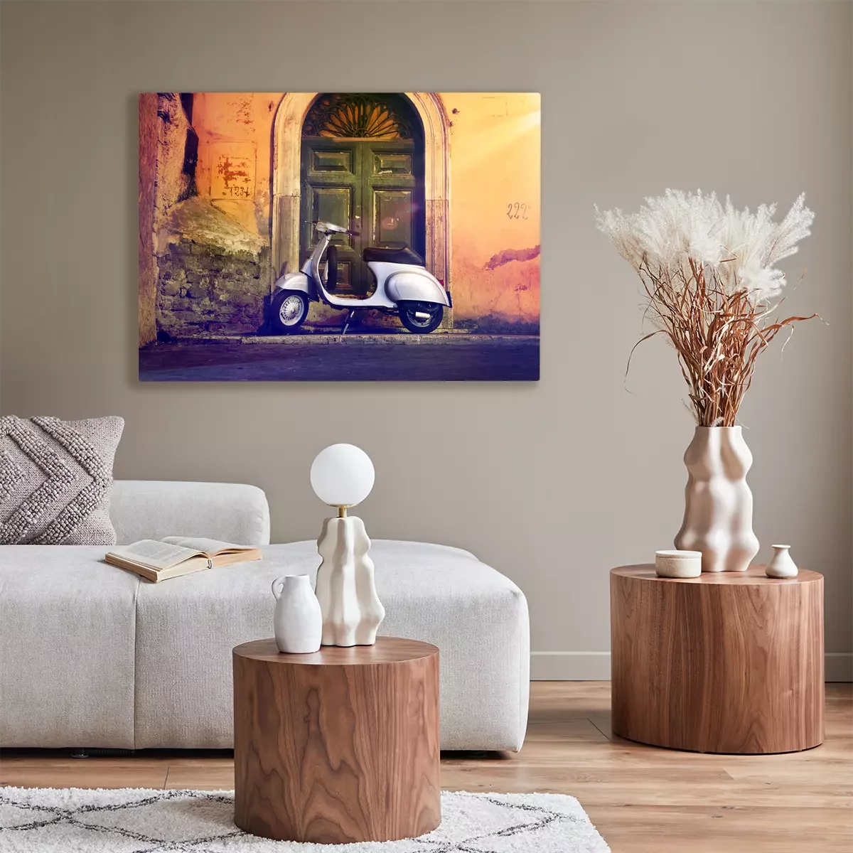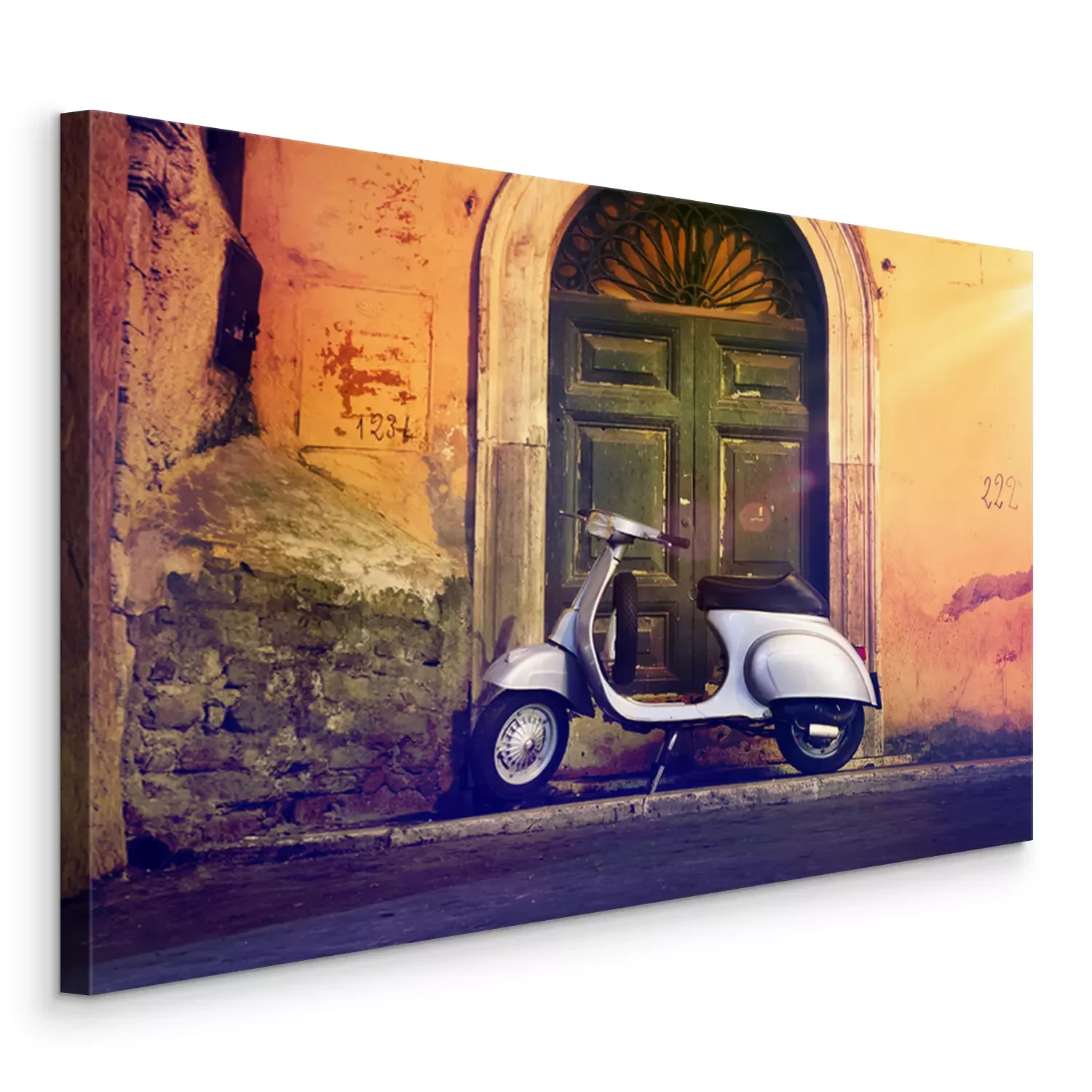 Canvas: Motorroller Roller nachts vor Haustür Italien - Italiaanse Scooter in een front van een deur