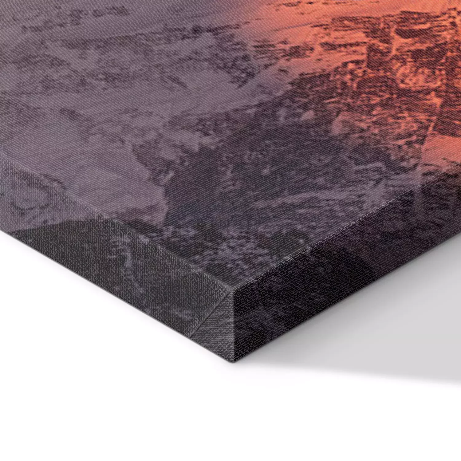 De print wordt aangebracht op hoogwaardig canvas dat op een schildersweefgetouw (spieraam) wordt gespannen. Omdat de print de zijranden bedekt, hoeft het ontwerp niet met een extra kader te worden omlijst. Wij raden ook composities aan die uit meerdere foto's bestaan en zo een coherente compositie vormen.