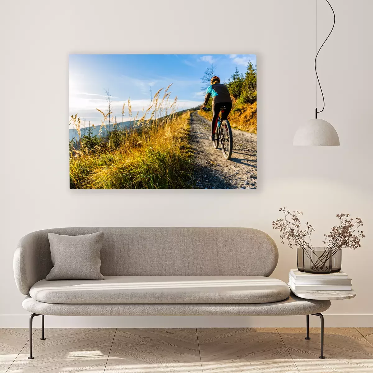De print wordt aangebracht op hoogwaardig canvas dat op een schildersweefgetouw (spieraam) wordt gespannen. Omdat de print de zijranden bedekt, hoeft het ontwerp niet met een extra kader te worden omlijst. Wij raden ook composities aan die uit meerdere foto's bestaan en zo een coherente compositie vormen.