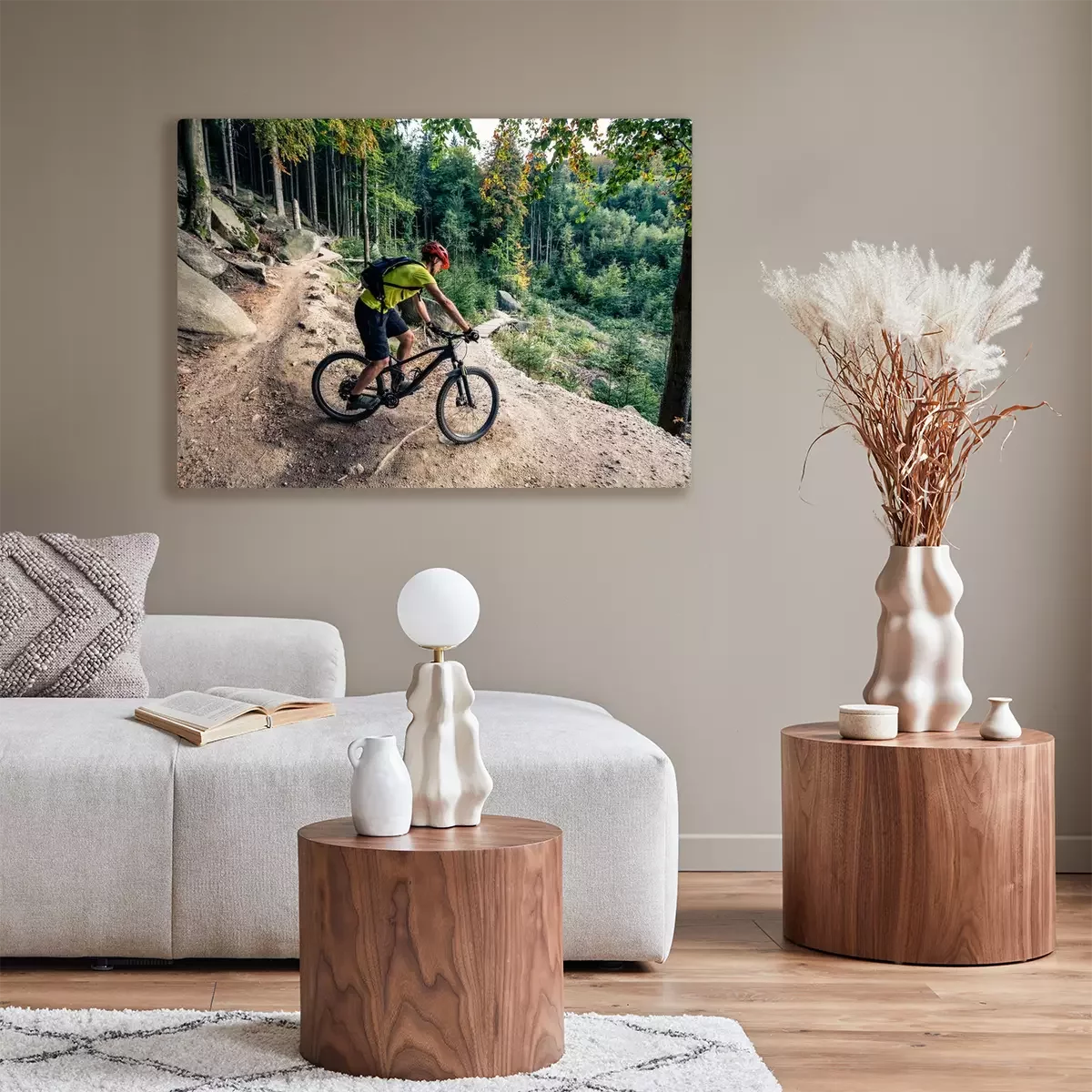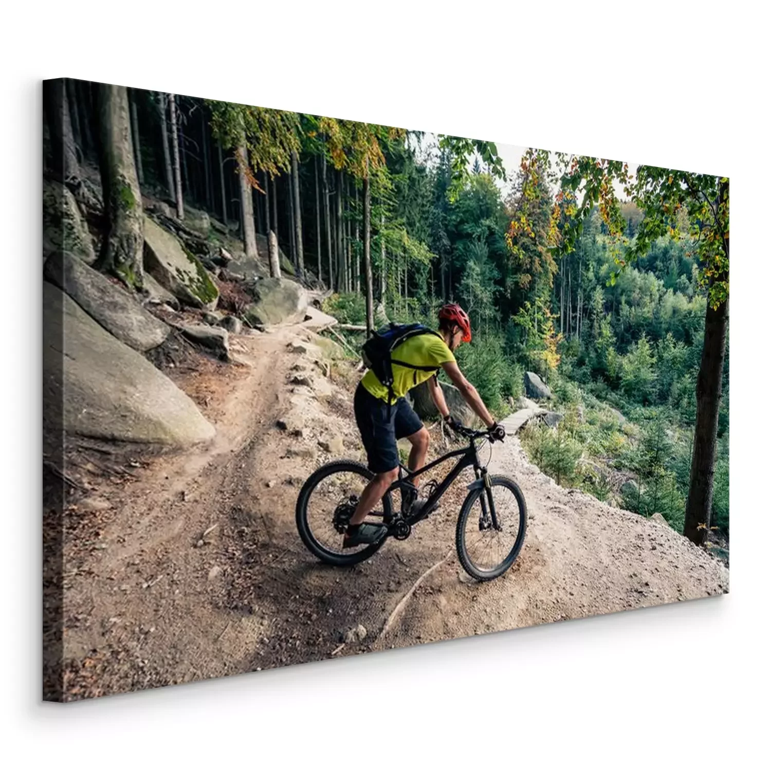 Canvas Mountainbiker rijden fietsen in herfst bos