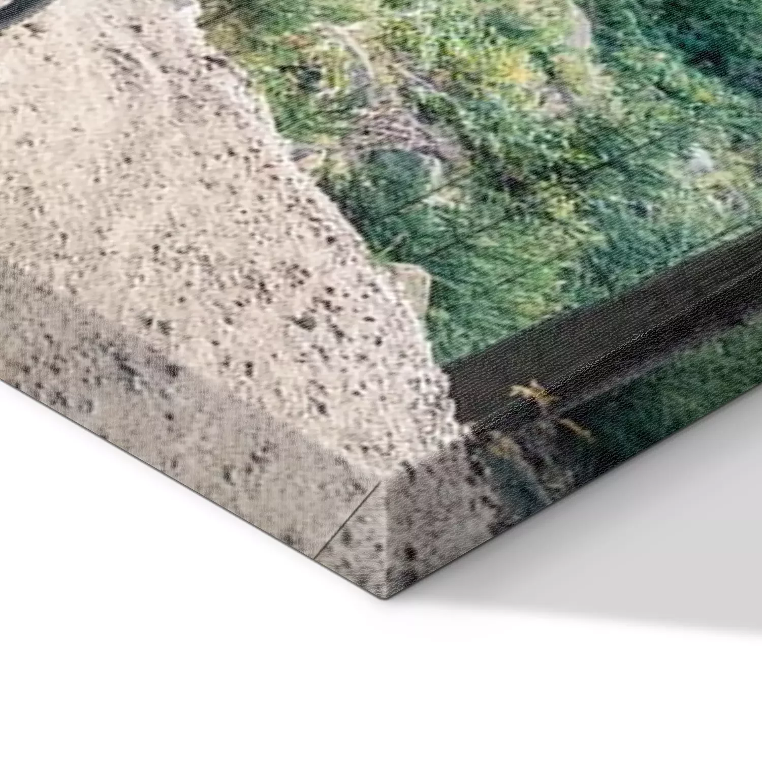 De print wordt aangebracht op hoogwaardig canvas dat op een schildersweefgetouw (spieraam) wordt gespannen. Omdat de print de zijranden bedekt, hoeft het ontwerp niet met een extra kader te worden omlijst. Wij raden ook composities aan die uit meerdere foto's bestaan en zo een coherente compositie vormen.