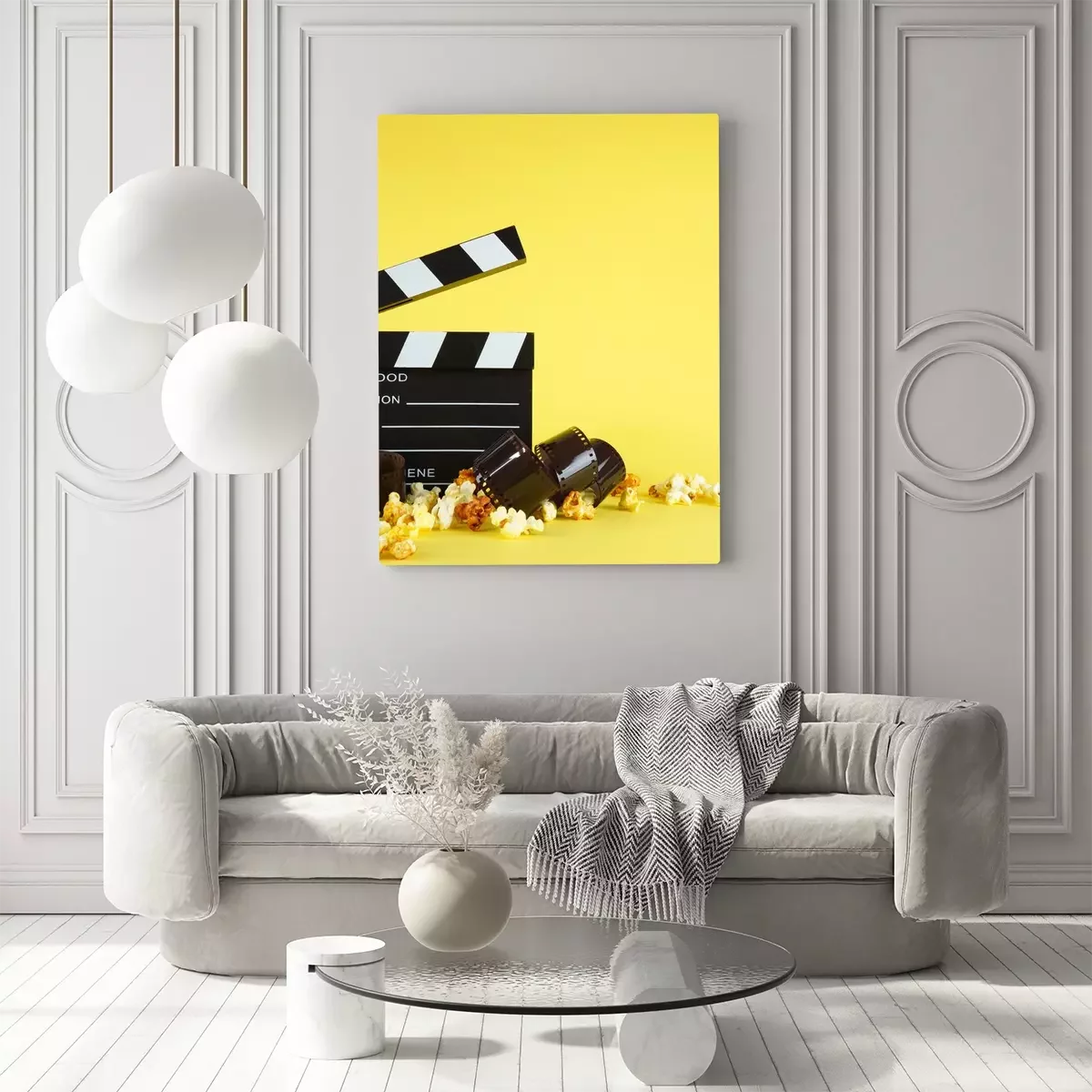 Canvas: movie, cinema video concept. movie clapper board with copy space.