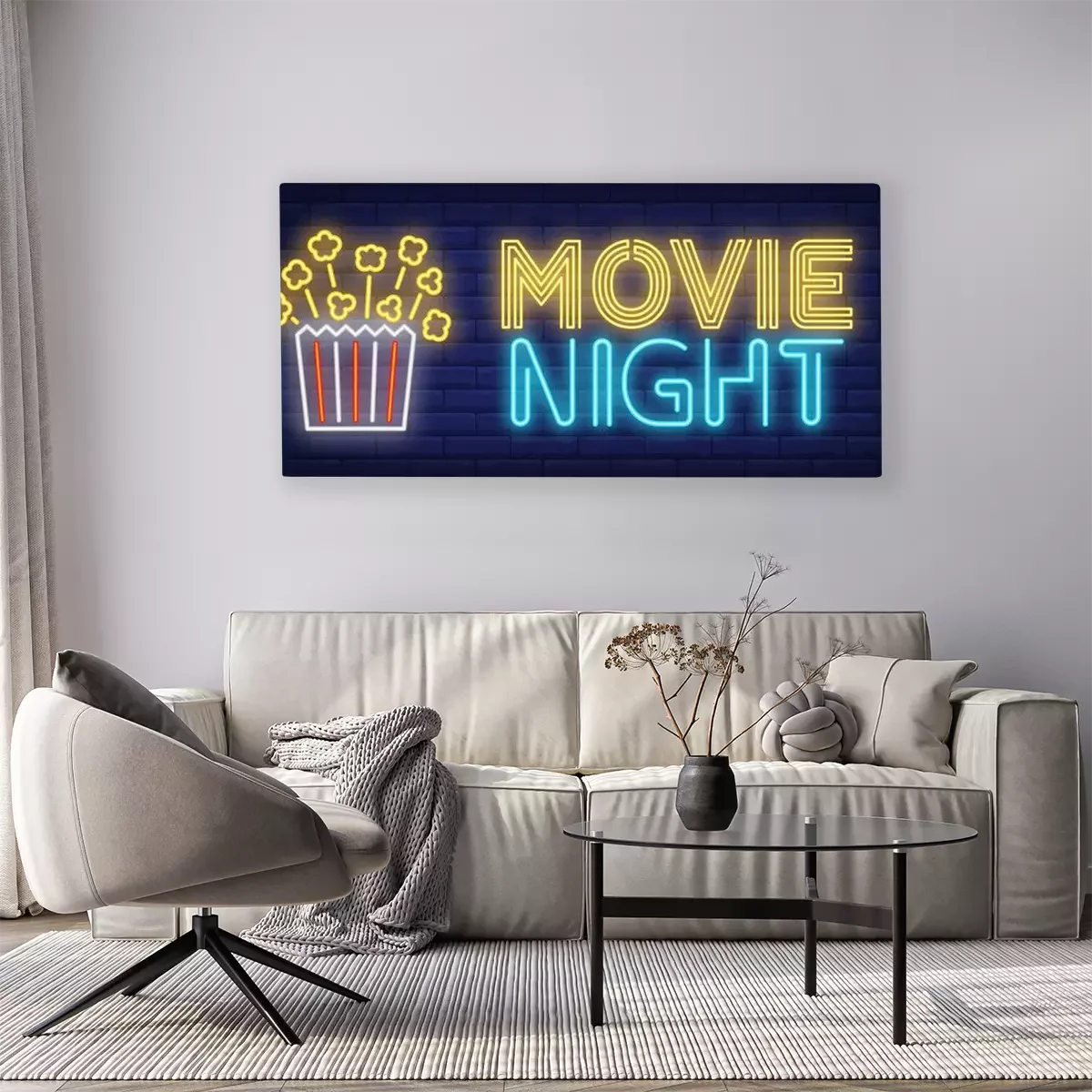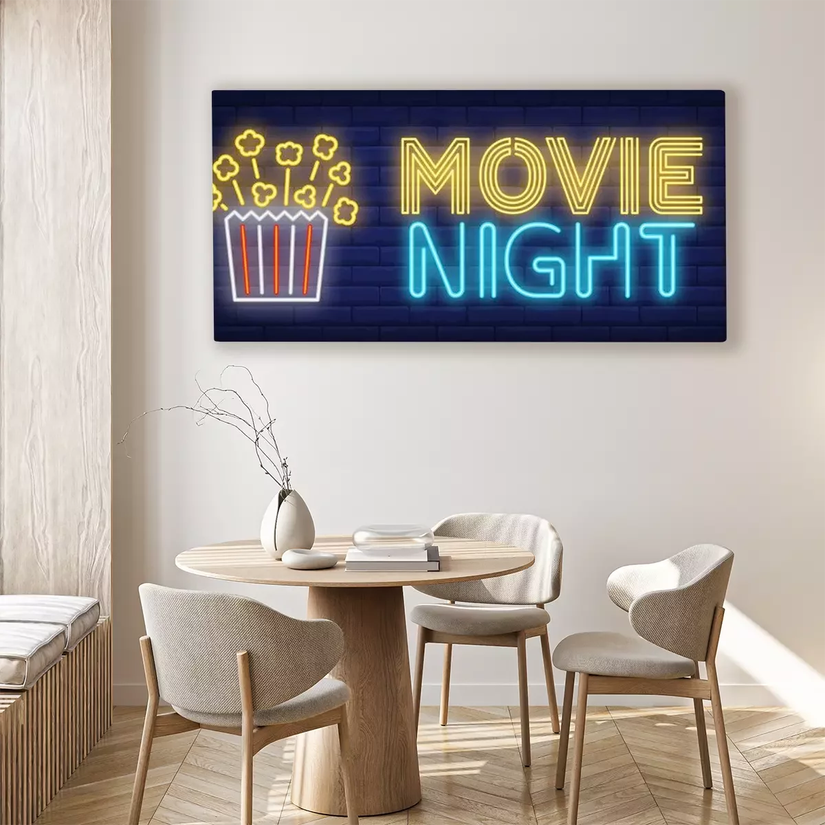 Canvas: Movie night neon text with popcorn paper box