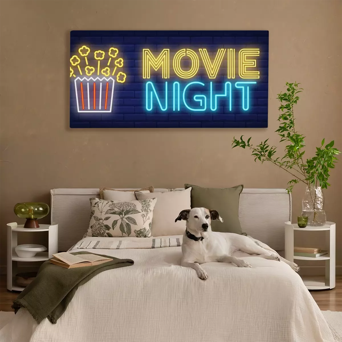 Canvas Movie night neon text with popcorn paper box