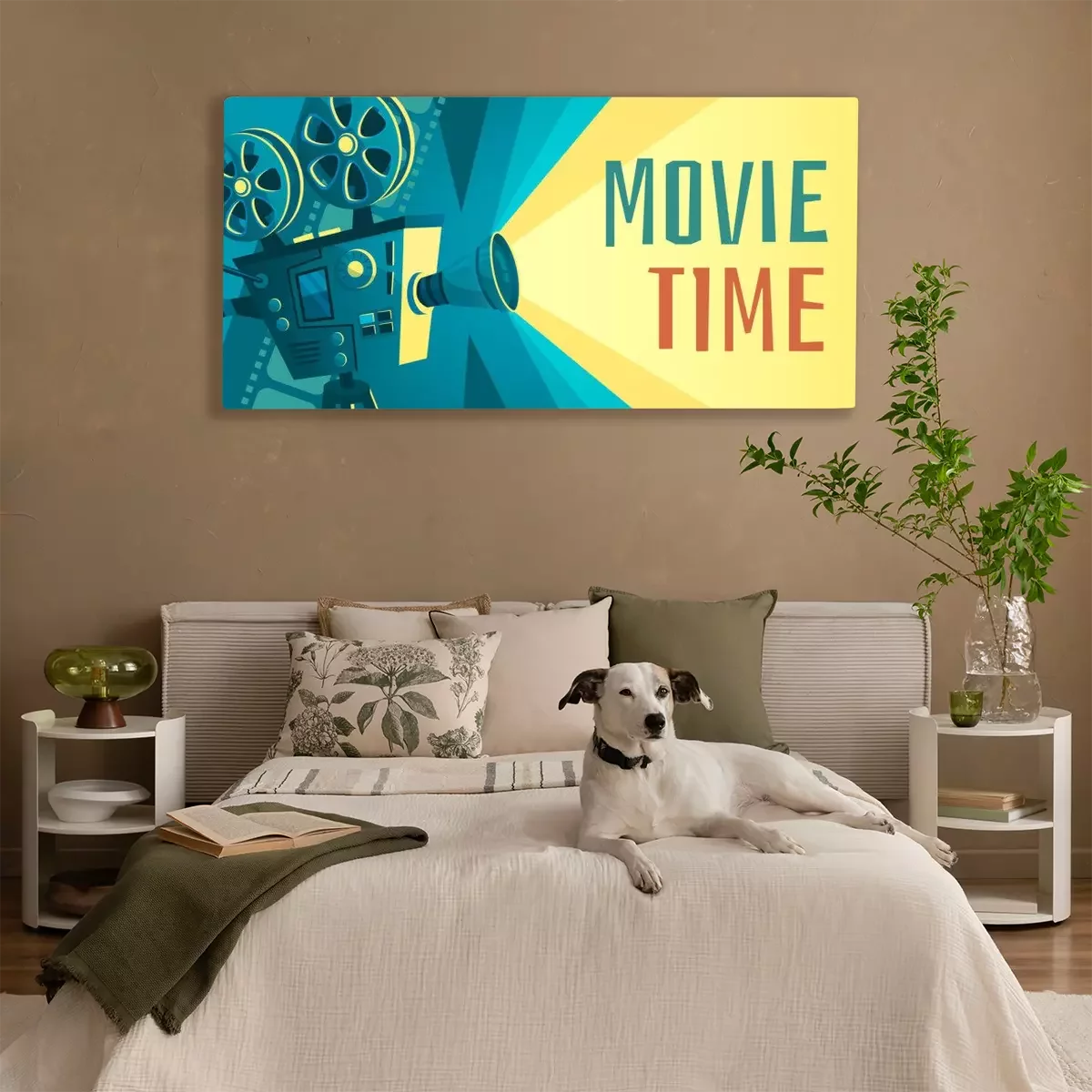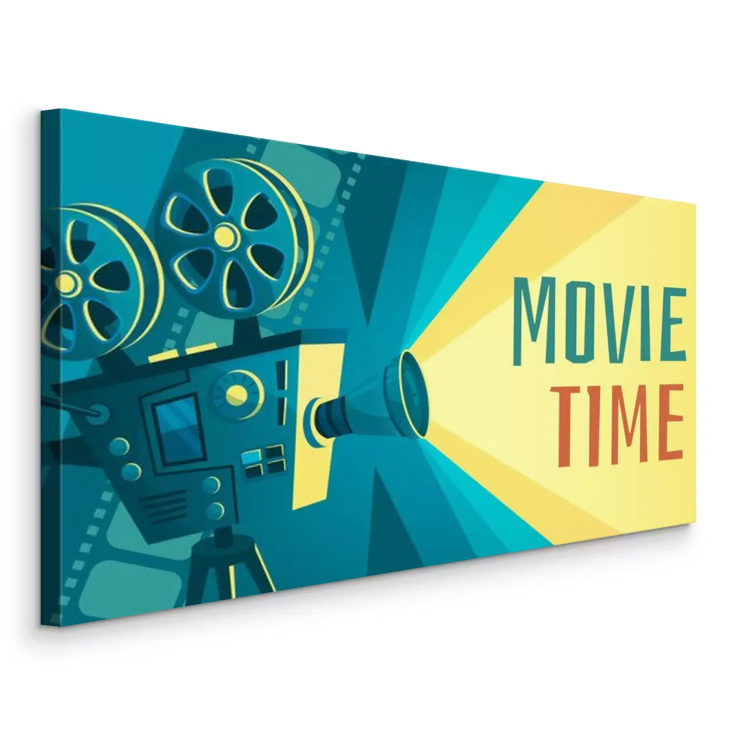 Canvas Movie time poster. Vintage cinema film projector, home movie theater and retro camera. Cinematography entertainment equipment, movies production festival banner vector illustration