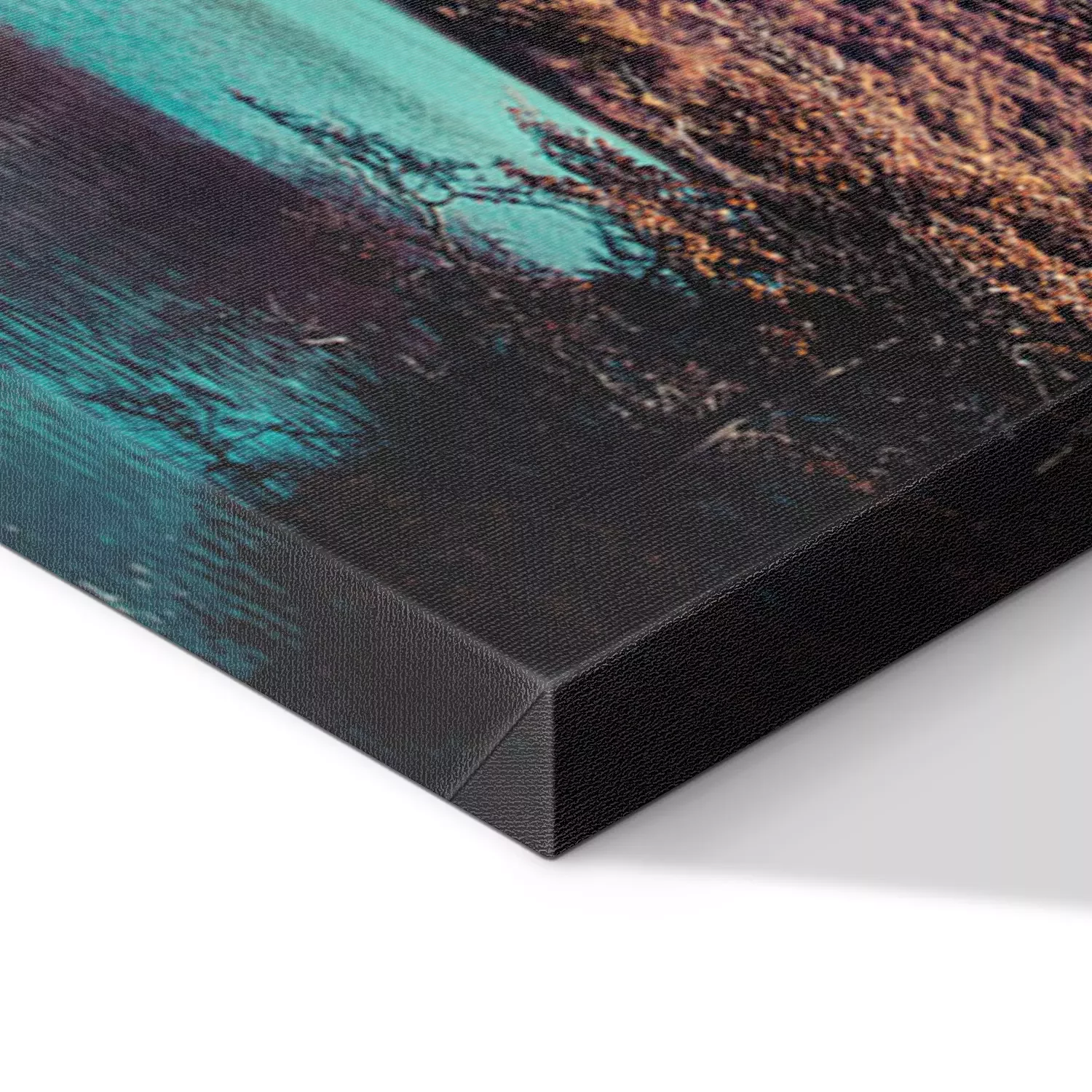 De print wordt aangebracht op hoogwaardig canvas dat op een schildersweefgetouw (spieraam) wordt gespannen. Omdat de print de zijranden bedekt, hoeft het ontwerp niet met een extra kader te worden omlijst. Wij raden ook composities aan die uit meerdere foto's bestaan en zo een coherente compositie vormen.