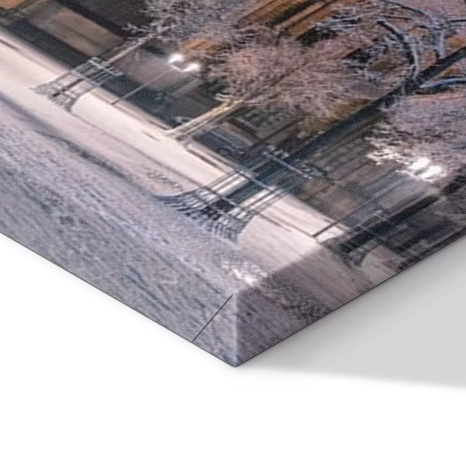 De print wordt aangebracht op hoogwaardig canvas dat op een schildersweefgetouw (spieraam) wordt gespannen. Omdat de print de zijranden bedekt, hoeft het ontwerp niet met een extra kader te worden omlijst. Wij raden ook composities aan die uit meerdere foto's bestaan en zo een coherente compositie vormen.