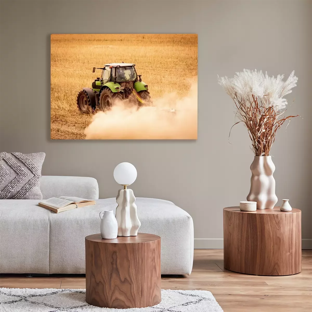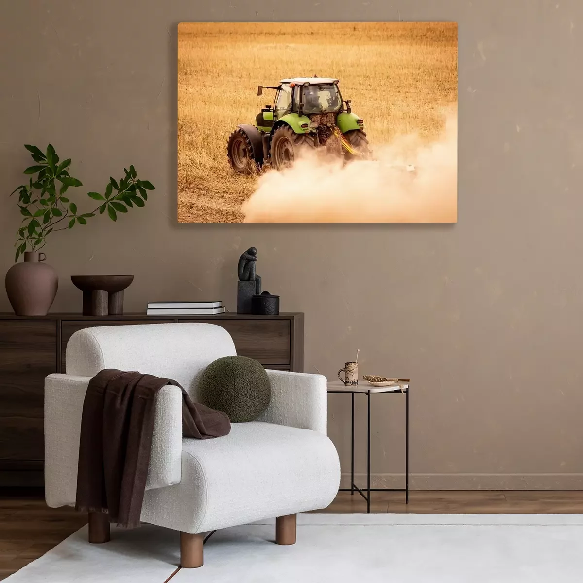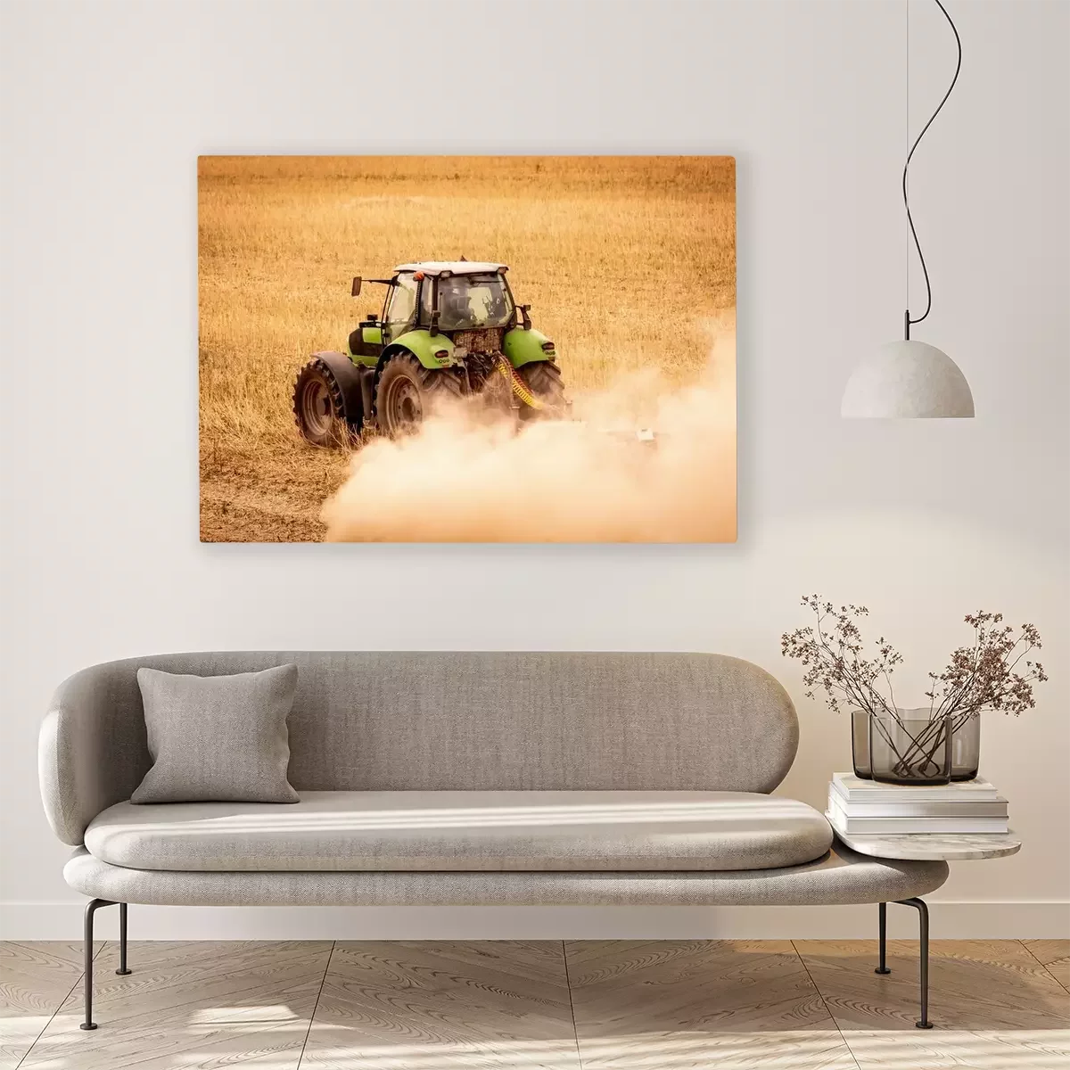 Canvas Mulching-tractor na raapzaadoogst onder het stof