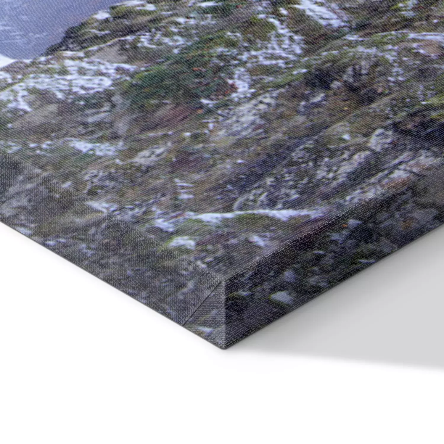 De print wordt aangebracht op hoogwaardig canvas dat op een schildersweefgetouw (spieraam) wordt gespannen. Omdat de print de zijranden bedekt, hoeft het ontwerp niet met een extra kader te worden omlijst. Wij raden ook composities aan die uit meerdere foto's bestaan en zo een coherente compositie vormen.