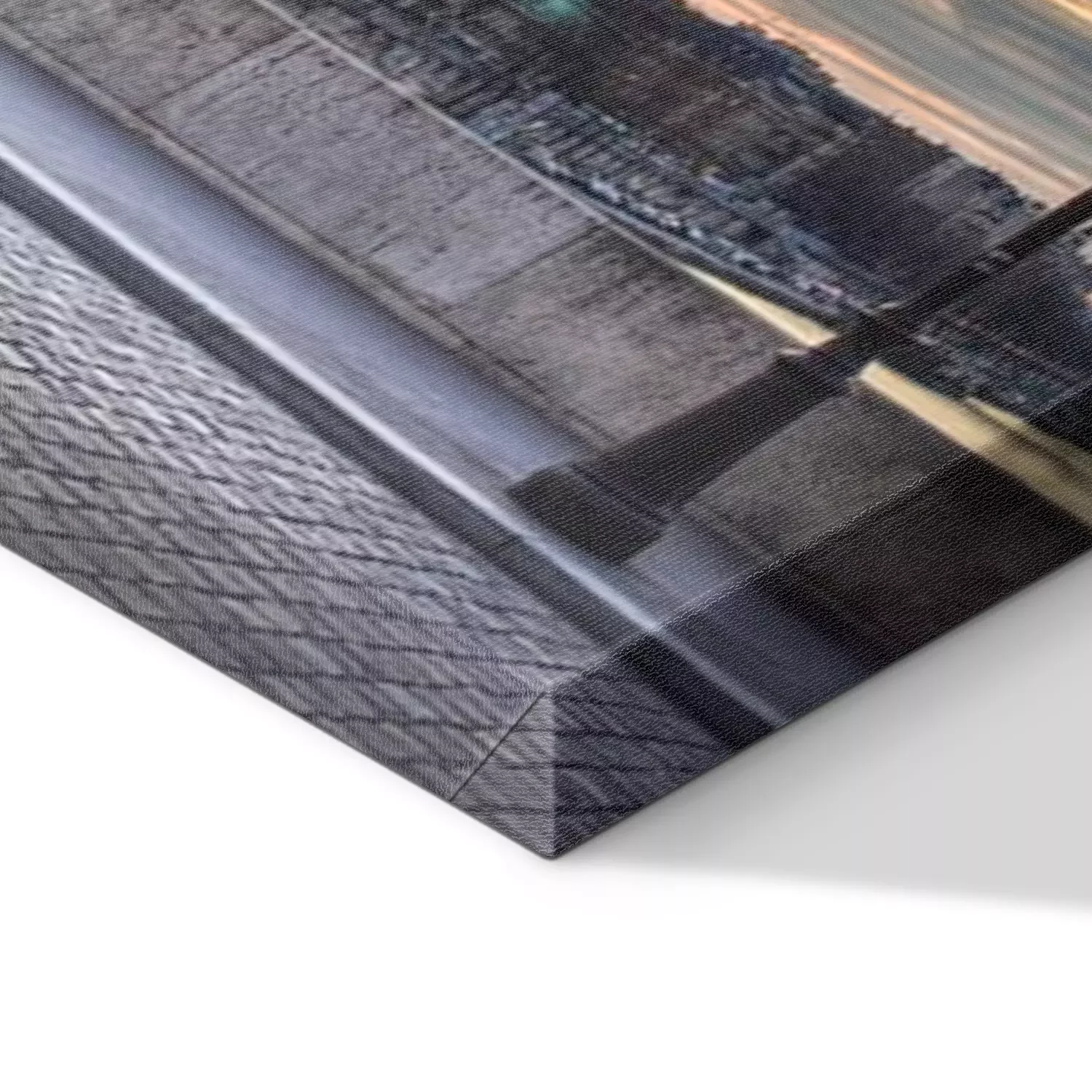 De print wordt aangebracht op hoogwaardig canvas dat op een schildersweefgetouw (spieraam) wordt gespannen. Omdat de print de zijranden bedekt, hoeft het ontwerp niet met een extra kader te worden omlijst. Wij raden ook composities aan die uit meerdere foto's bestaan en zo een coherente compositie vormen.