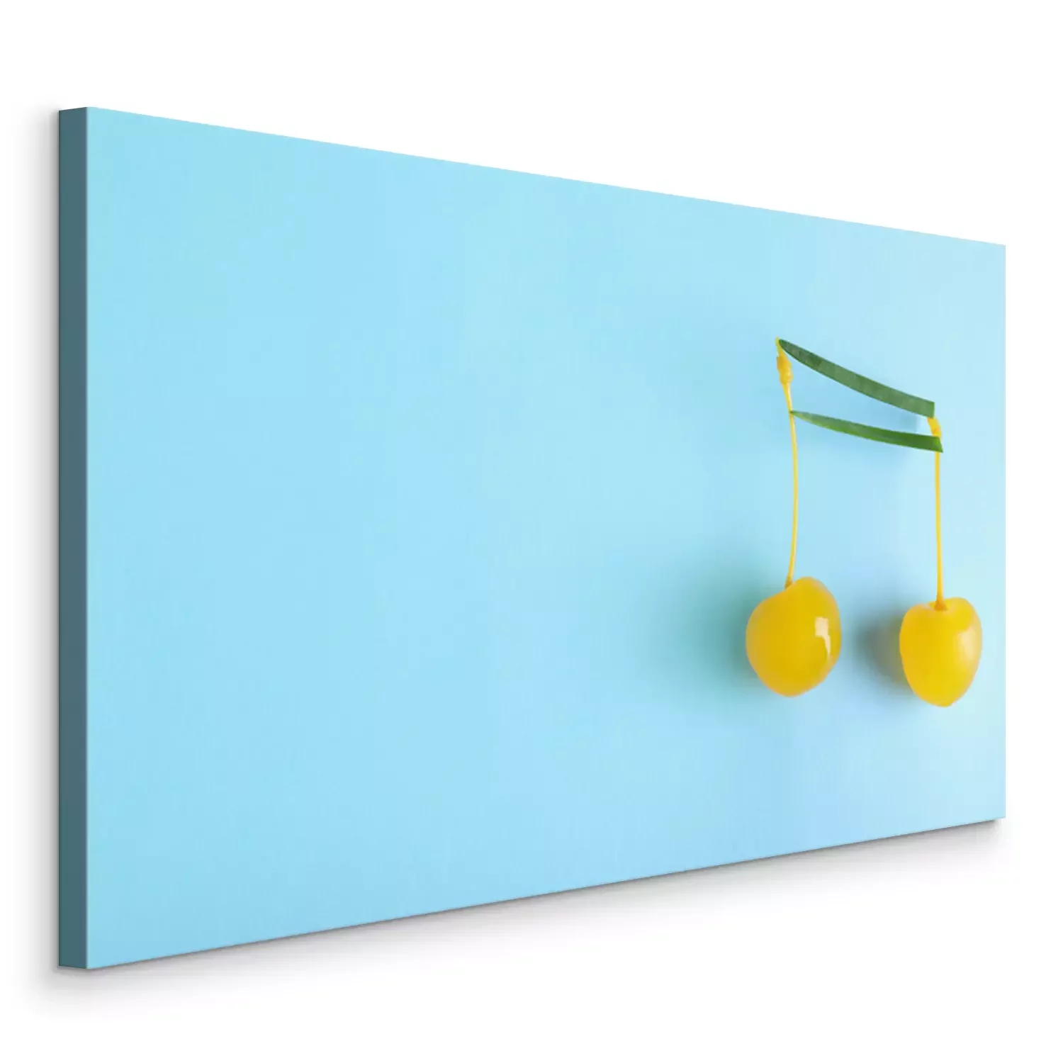 Canvas Musical note made of onion and cocktail cherries on color background, top view. Space for text