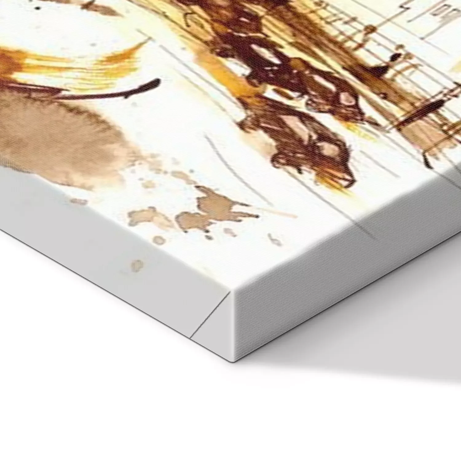 De print wordt aangebracht op hoogwaardig canvas dat op een schildersweefgetouw (spieraam) wordt gespannen. Omdat de print de zijranden bedekt, hoeft het ontwerp niet met een extra kader te worden omlijst. Wij raden ook composities aan die uit meerdere foto's bestaan en zo een coherente compositie vormen.