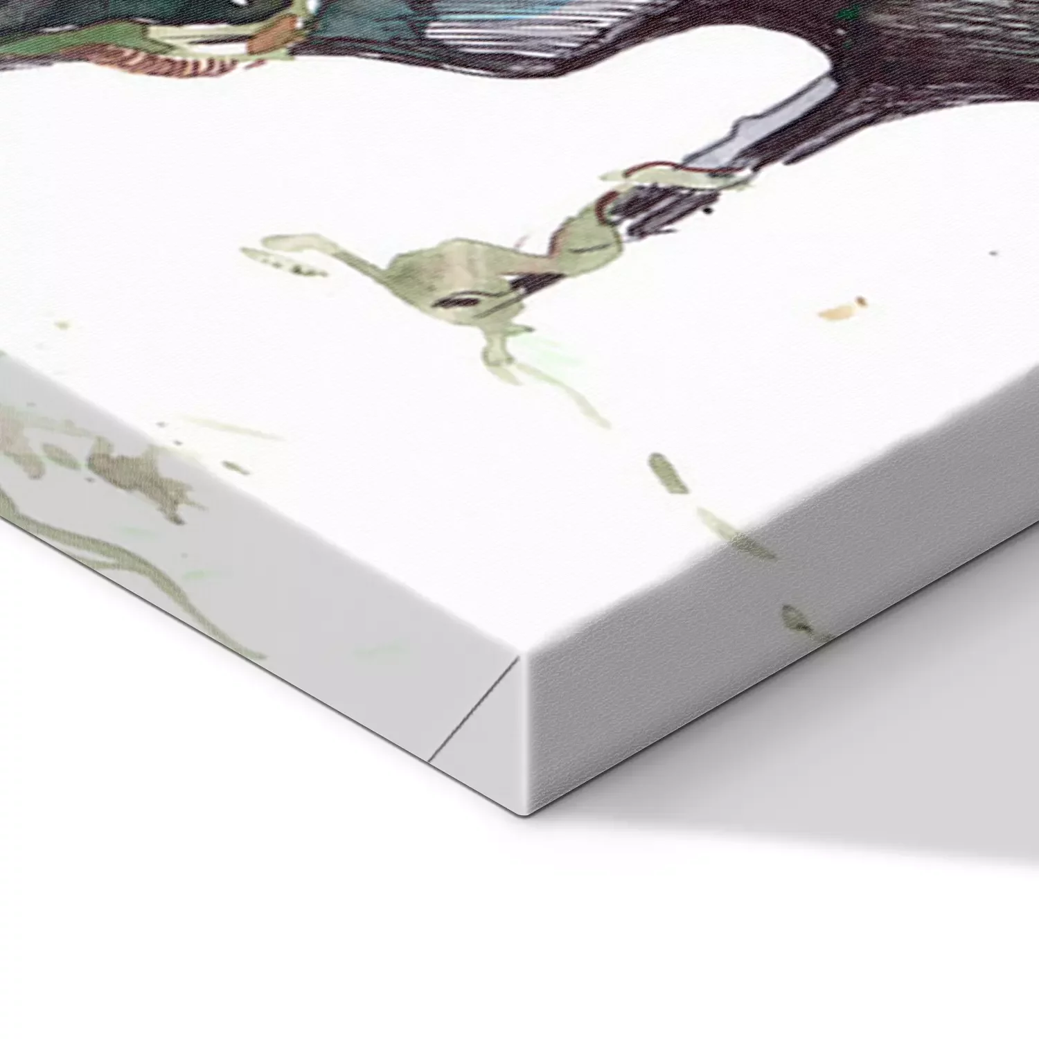 De print wordt aangebracht op hoogwaardig canvas dat op een schildersweefgetouw (spieraam) wordt gespannen. Omdat de print de zijranden bedekt, hoeft het ontwerp niet met een extra kader te worden omlijst. Wij raden ook composities aan die uit meerdere foto's bestaan en zo een coherente compositie vormen.