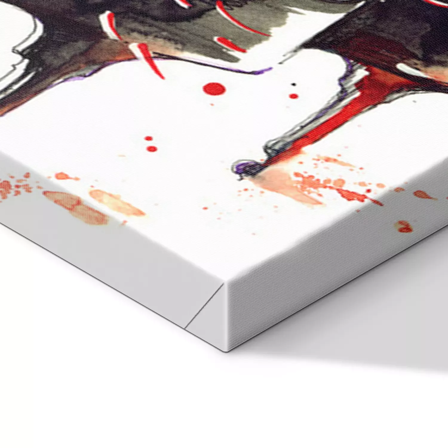 De print wordt aangebracht op hoogwaardig canvas dat op een schildersweefgetouw (spieraam) wordt gespannen. Omdat de print de zijranden bedekt, hoeft het ontwerp niet met een extra kader te worden omlijst. Wij raden ook composities aan die uit meerdere foto's bestaan en zo een coherente compositie vormen.