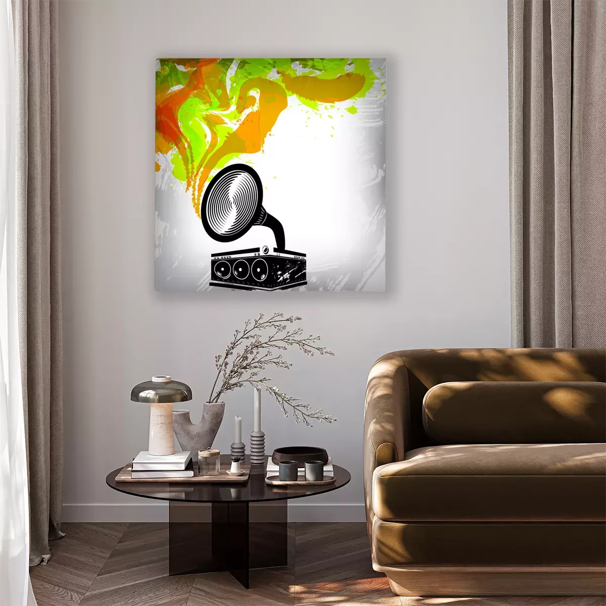 Canvas Muziek concept grunge achtergrond, grammofoon