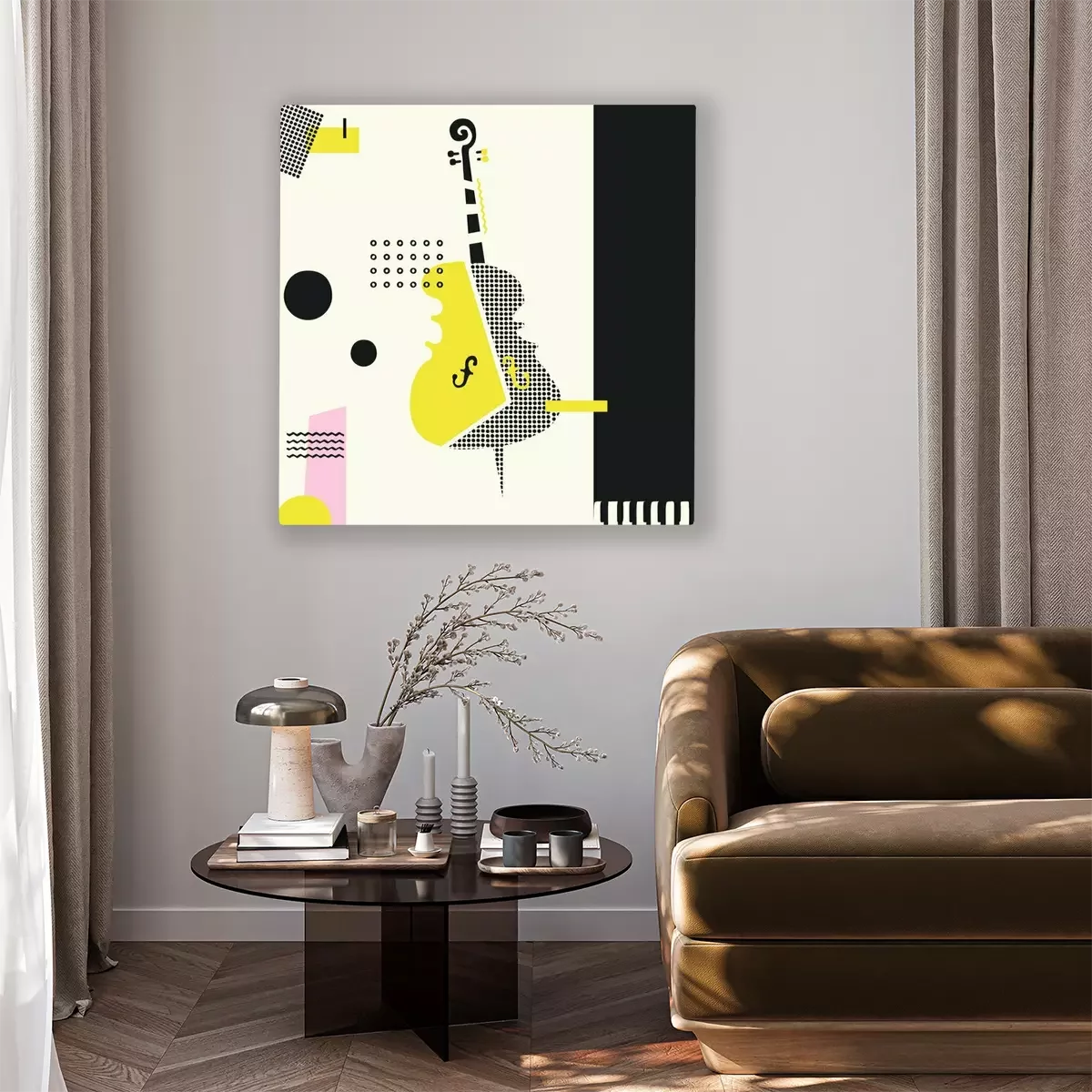 Canvas Muziek kleurrijke achtergrond met violoncel geïsoleerde vectorillustratie. Geometrische muziekfestivalaffiche, creatief celloontwerp